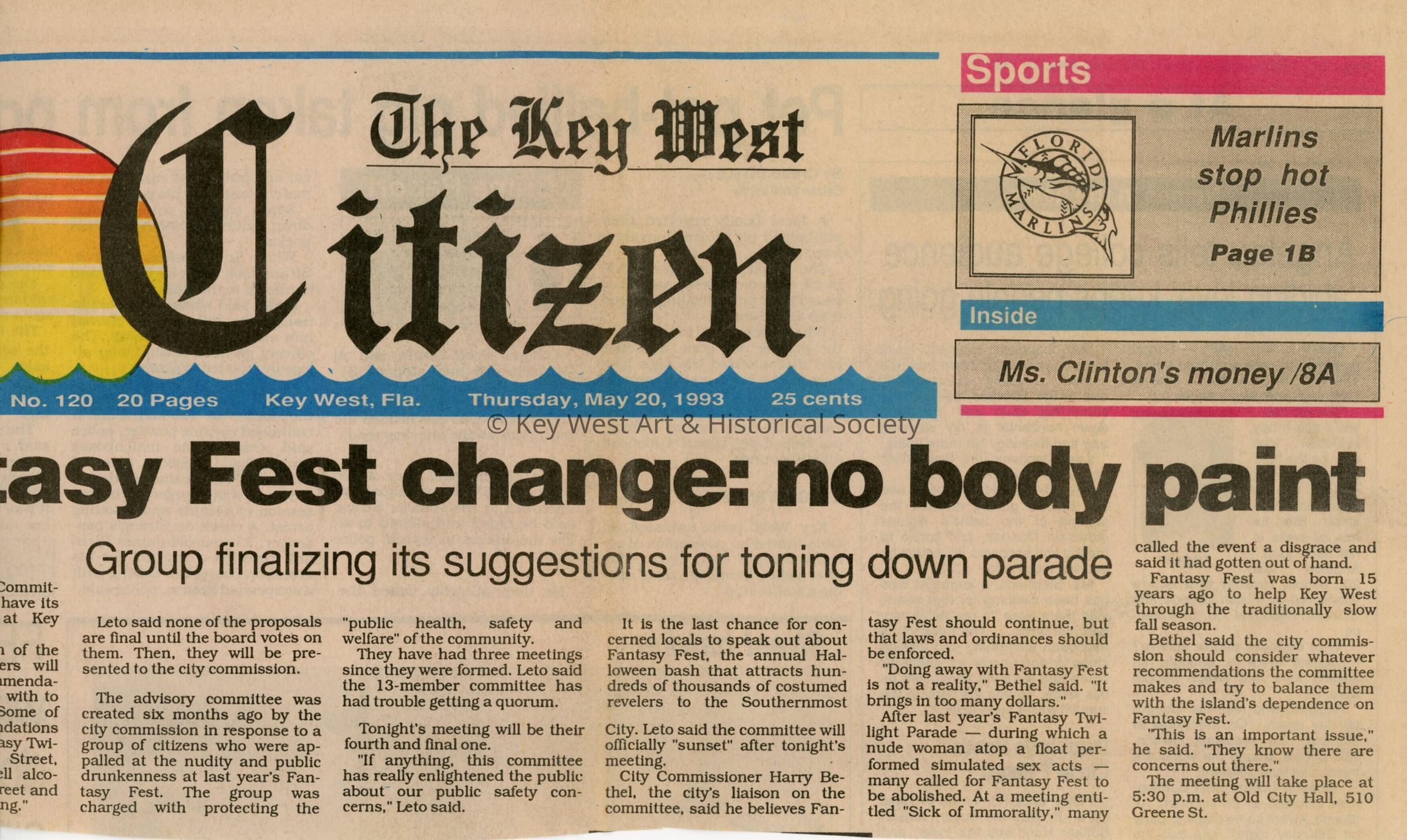 An article in the Key West Citizen about Fantasy Fest that reads Fantasy Fe