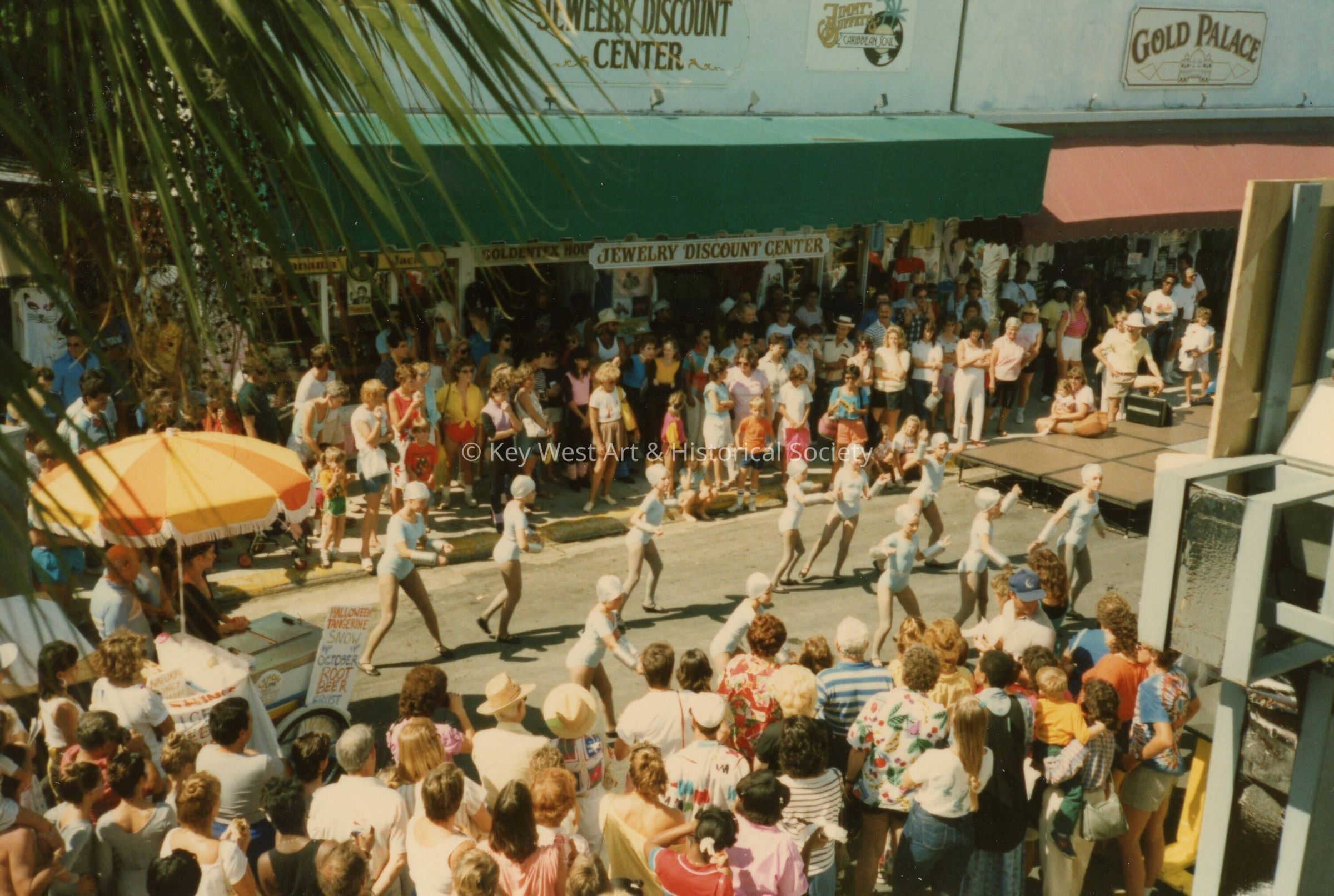 A group of unknown people performing on the street in front of a crowd.Collection