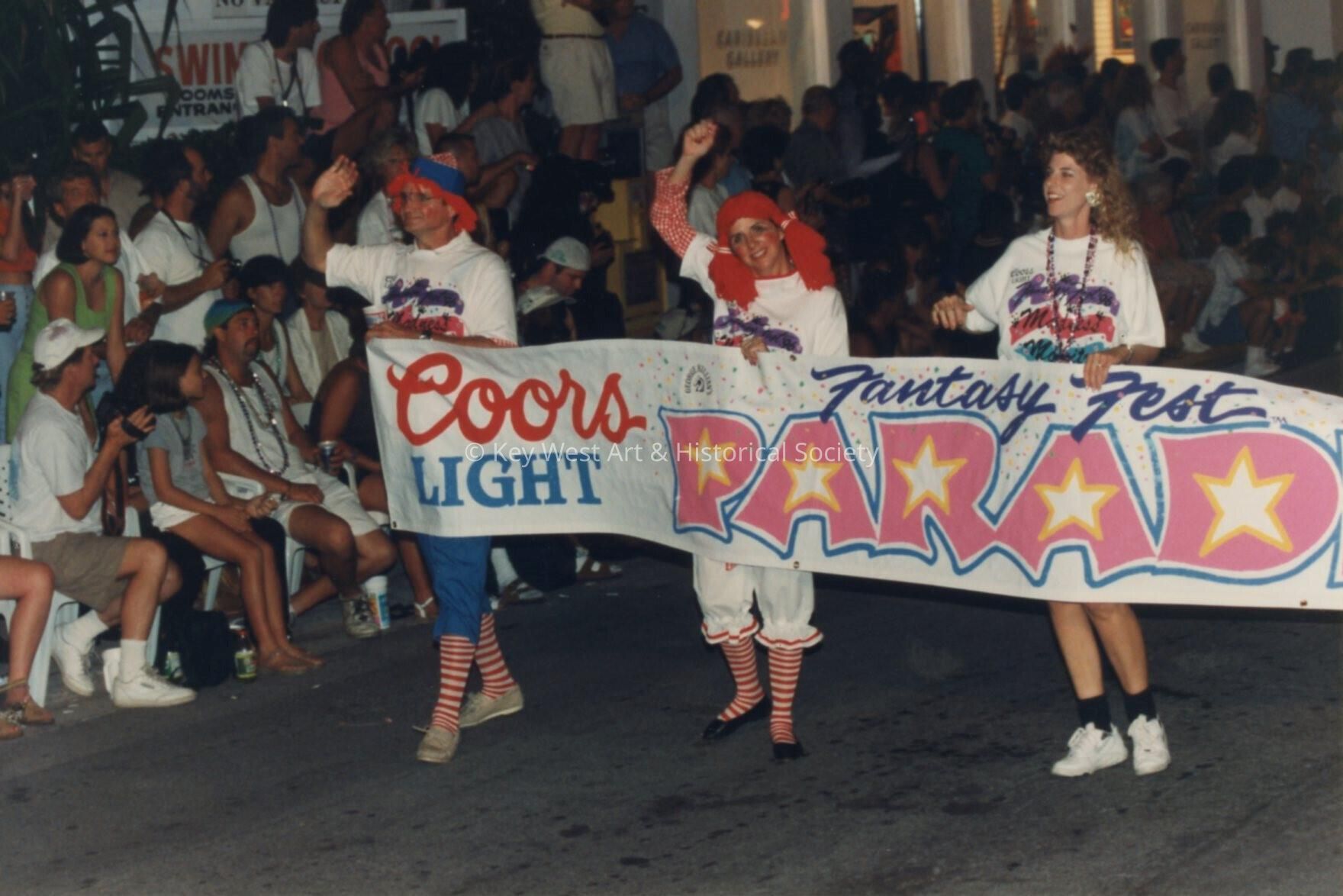 Unknown woman in the parade holding a Coors Light Fantasy Fest parade sign.Collection