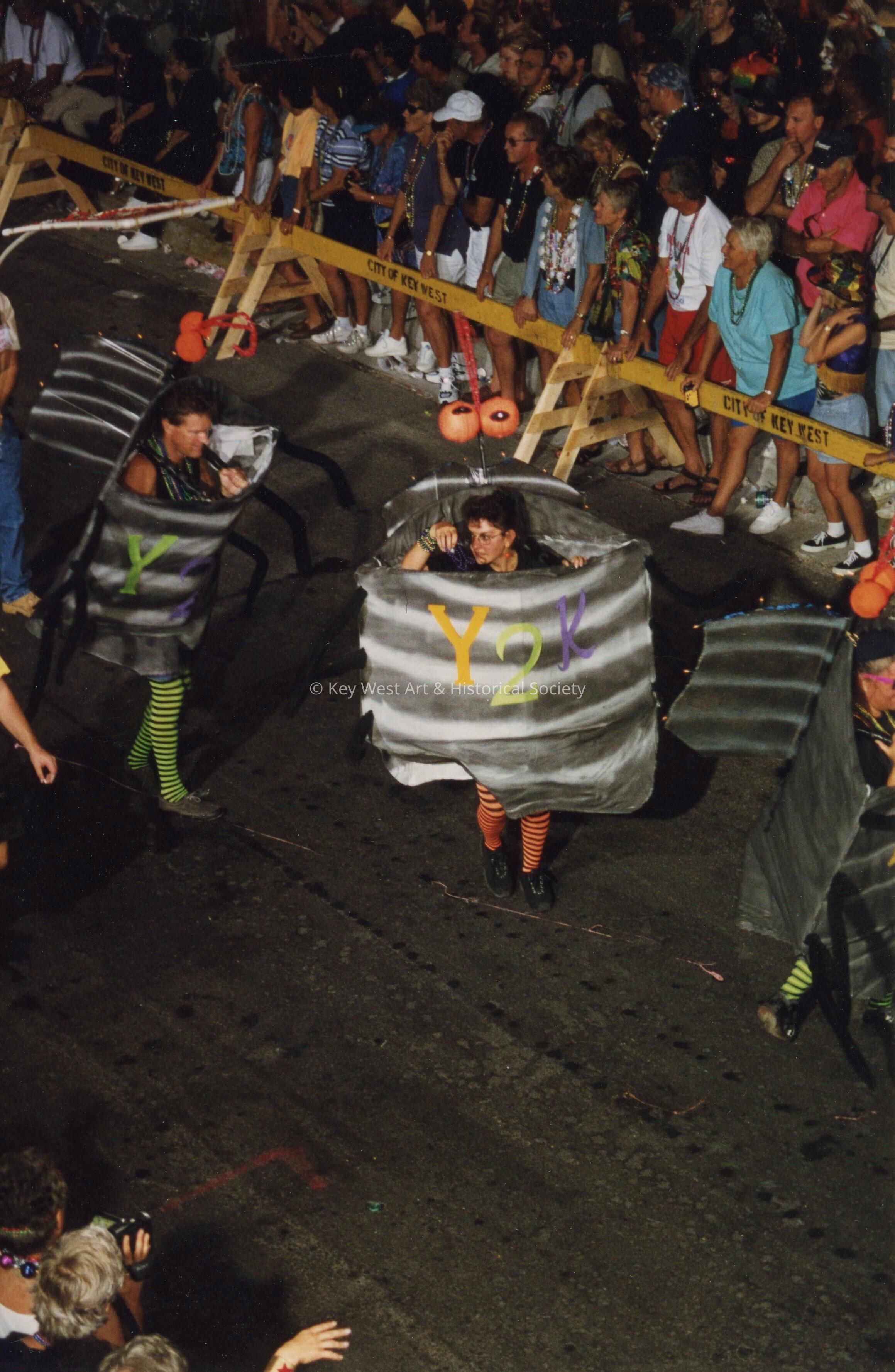 Unknown people dressed up walking in the street for the parade.Entry/Object ID