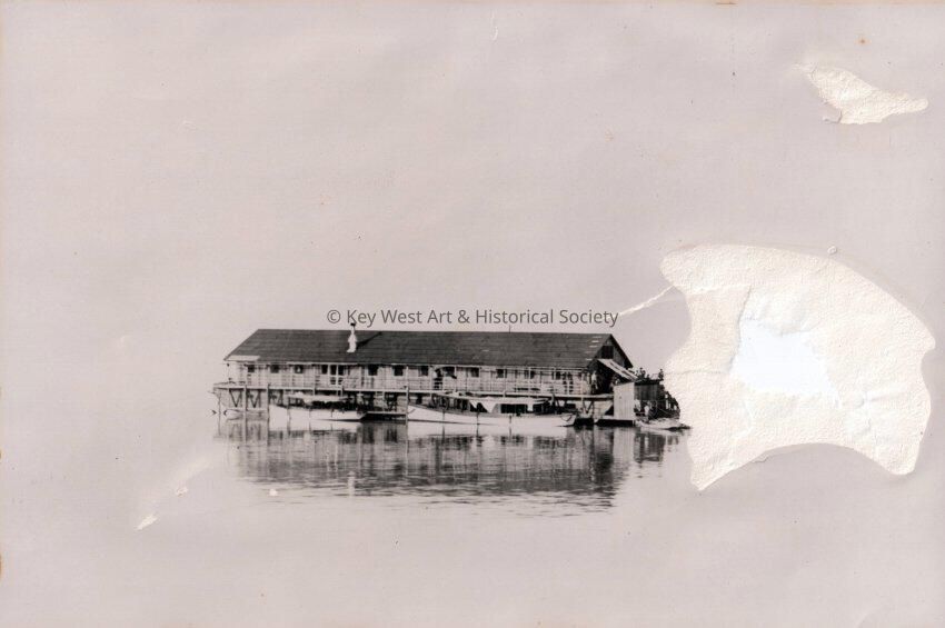 Quarter boat #3, at Long Key Viaduct, in July of 1906. Workmen were quartered on these boats during the construction of the Florida East Coast Railway's Overseas Extension to Key West. During the storm of 1909 one of these boats was blown out to sea with considerable loss of life.Collection