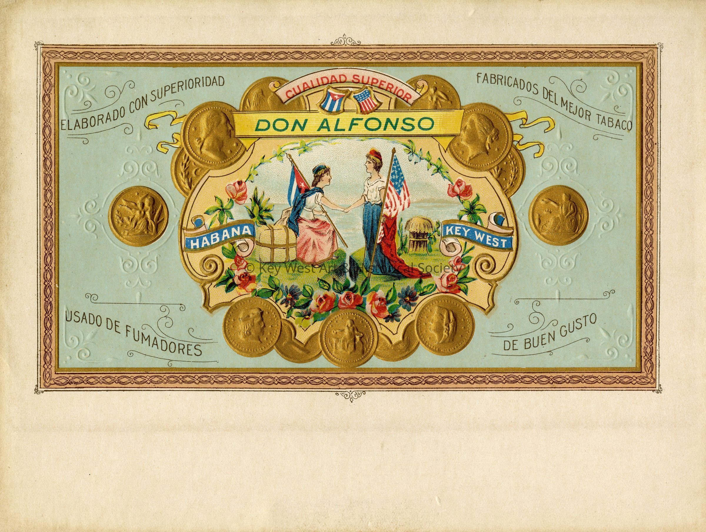 Full color lithograph inner box cigar label promoting Don Alfonso. Likely taken from a sample book produced by the lithographer.Type of Print
