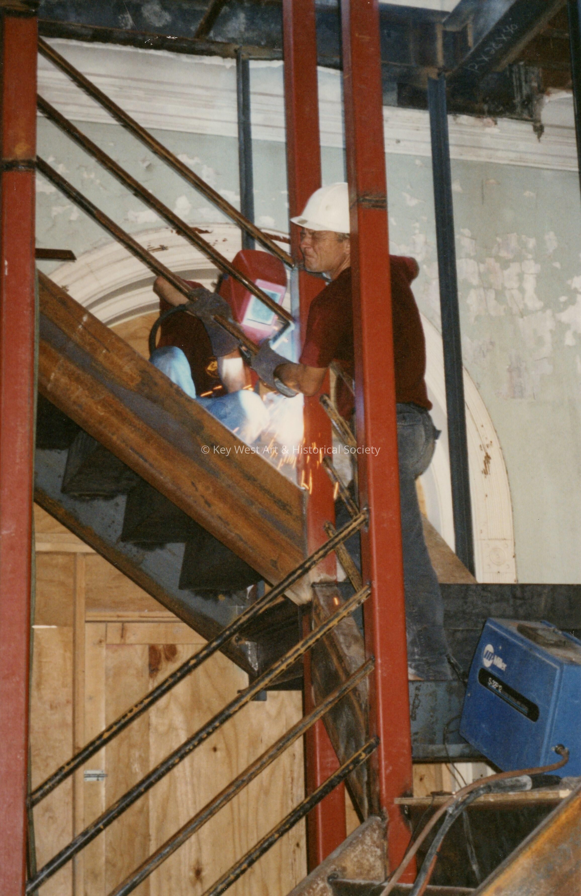 Dowling's welding install handrails at the North fire stairway.Collection