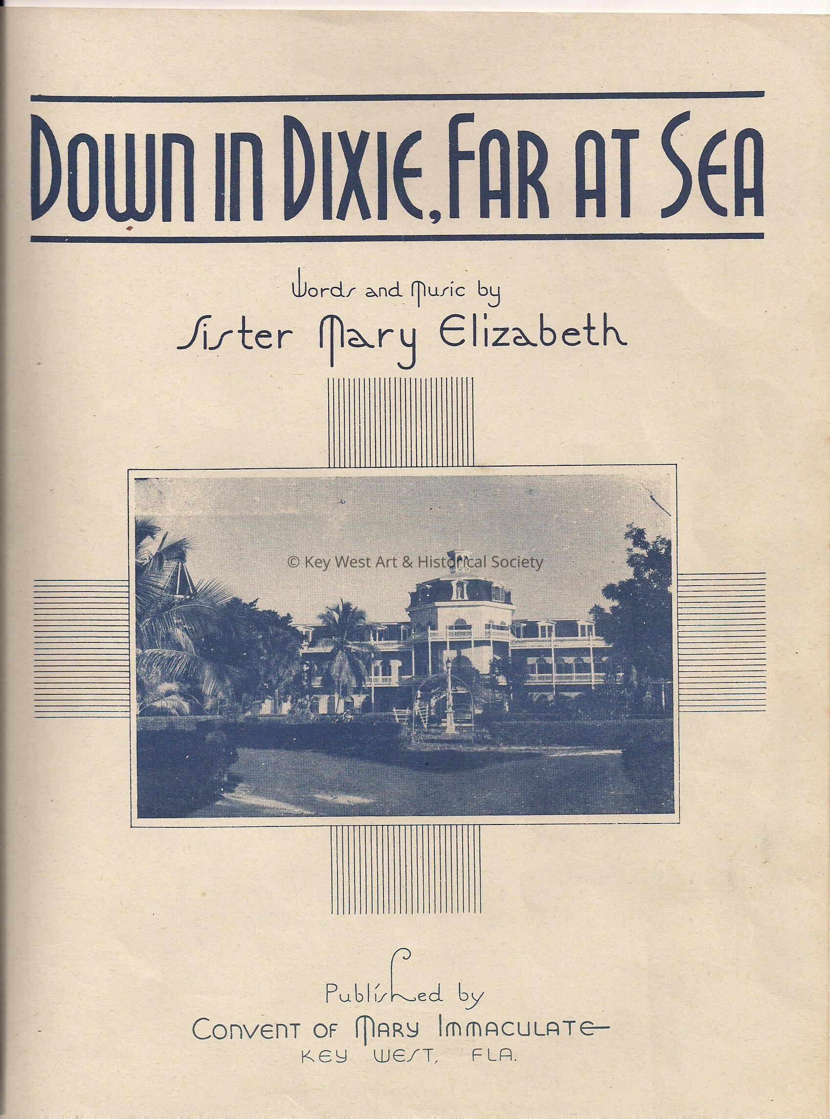 Sheet music composed by Sister Mary Elizabeth and published by the Convent of Mary Immaculate titled 'Down in Dixie, Far at Sea'.