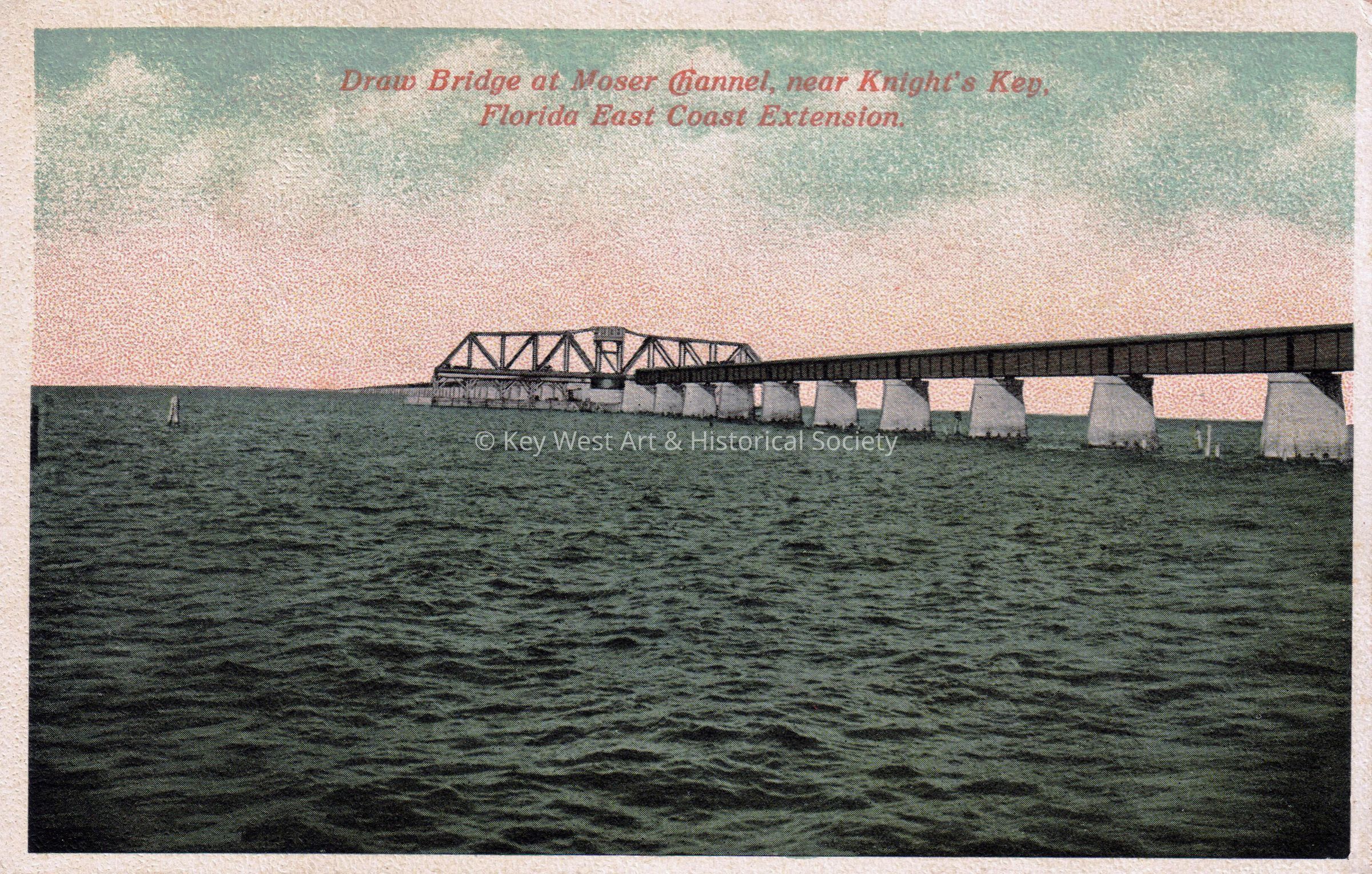Postcard depicting an Overseas Railway bridge. The caption reads, ‘Draw Bridge at Moser Channel, near Knights’ Key, Florida East Coast Expansion.’Subject Person/Organization