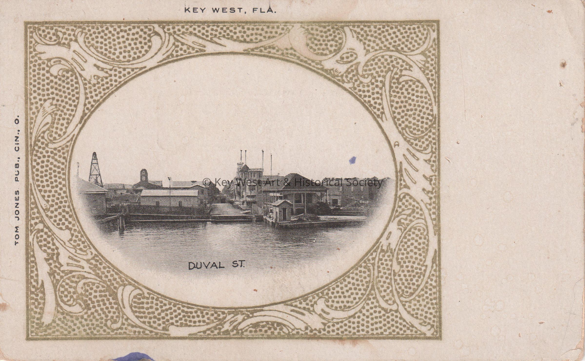 Postcard depicting buildings and a street at the water’s edge. The caption reads, ‘Duval Street, Key West, Florida.’Collection