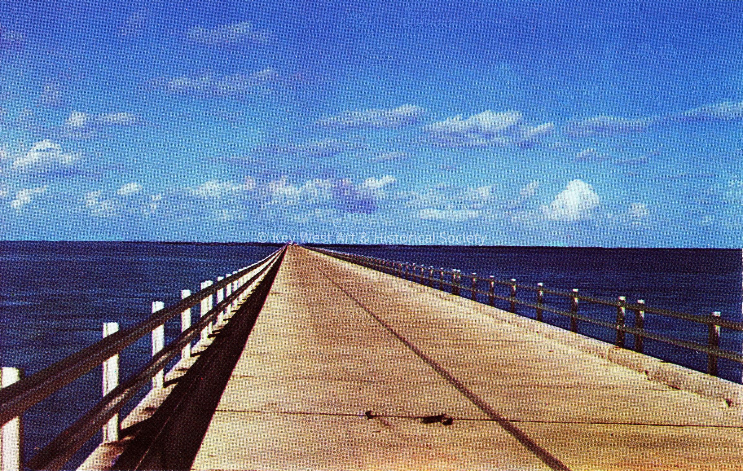 Postcard depicting the Overseas Highway. Notation on verso reads, 'Overseas Highway between Miami and Key West, Florida.'Collection
