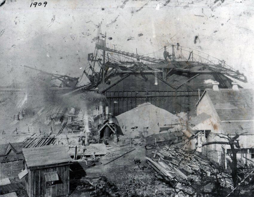 Hurricane damage to the Building 54 Fuel Pump Station, in 1909.Collection