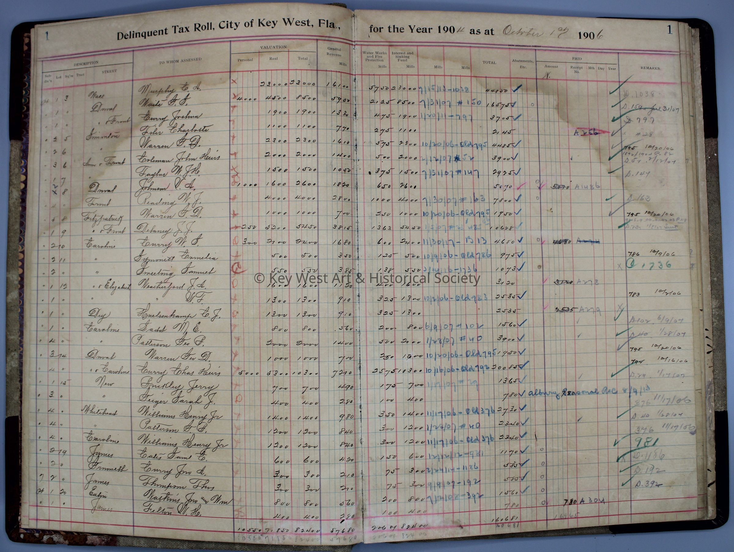 City of Key West Delinquent Tax Roll Year 1904: © Key West Art & Historical Society