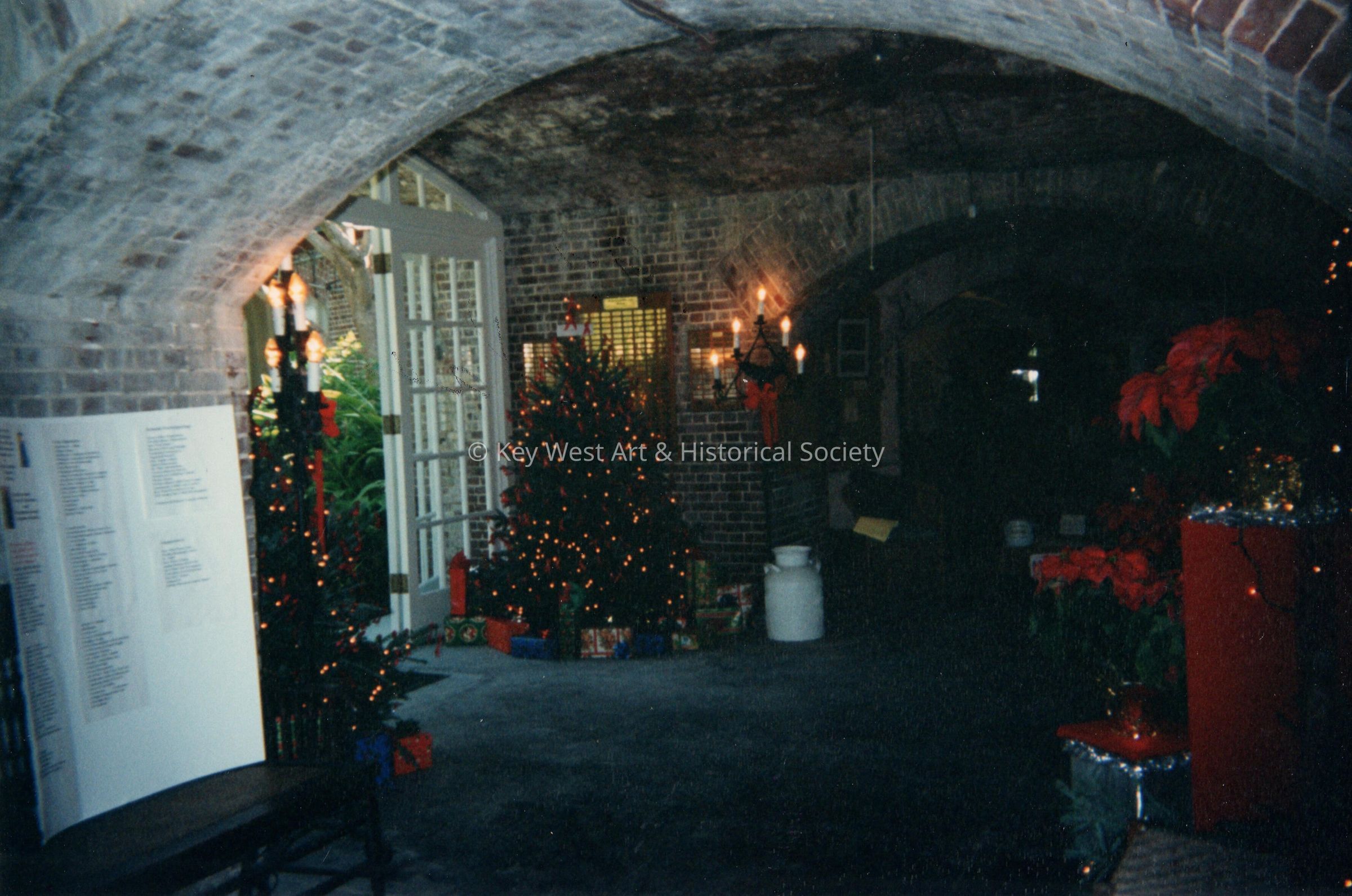 East Martello lobby Christmas red ribbon trees, in 1994.