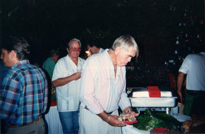 Unknown men at buffet at East Martello, in 1994.