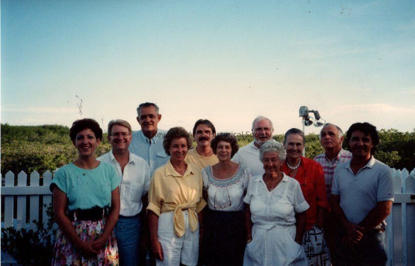 East Martello event, circa 1987-1988, left to right are Joan Miller, Dan Lee, Tom Hambright, Becky, David Kaufelt, Ruth Munder, John Mercer, Bea Howton, Nancy Jameson, Fred Cole, and Cullen Chambers.Collection