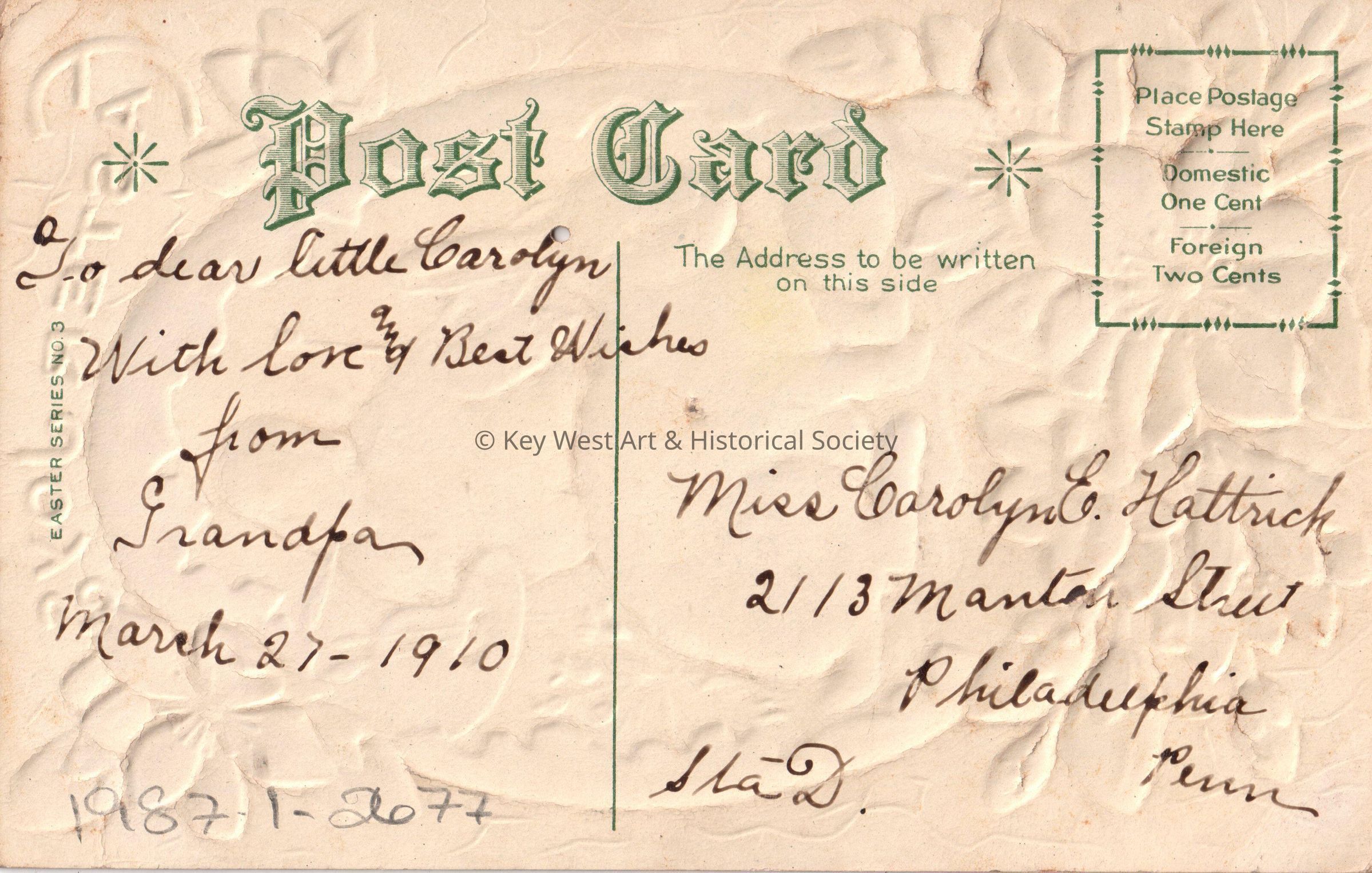 The message on the verso reads, ‘’.Addressee