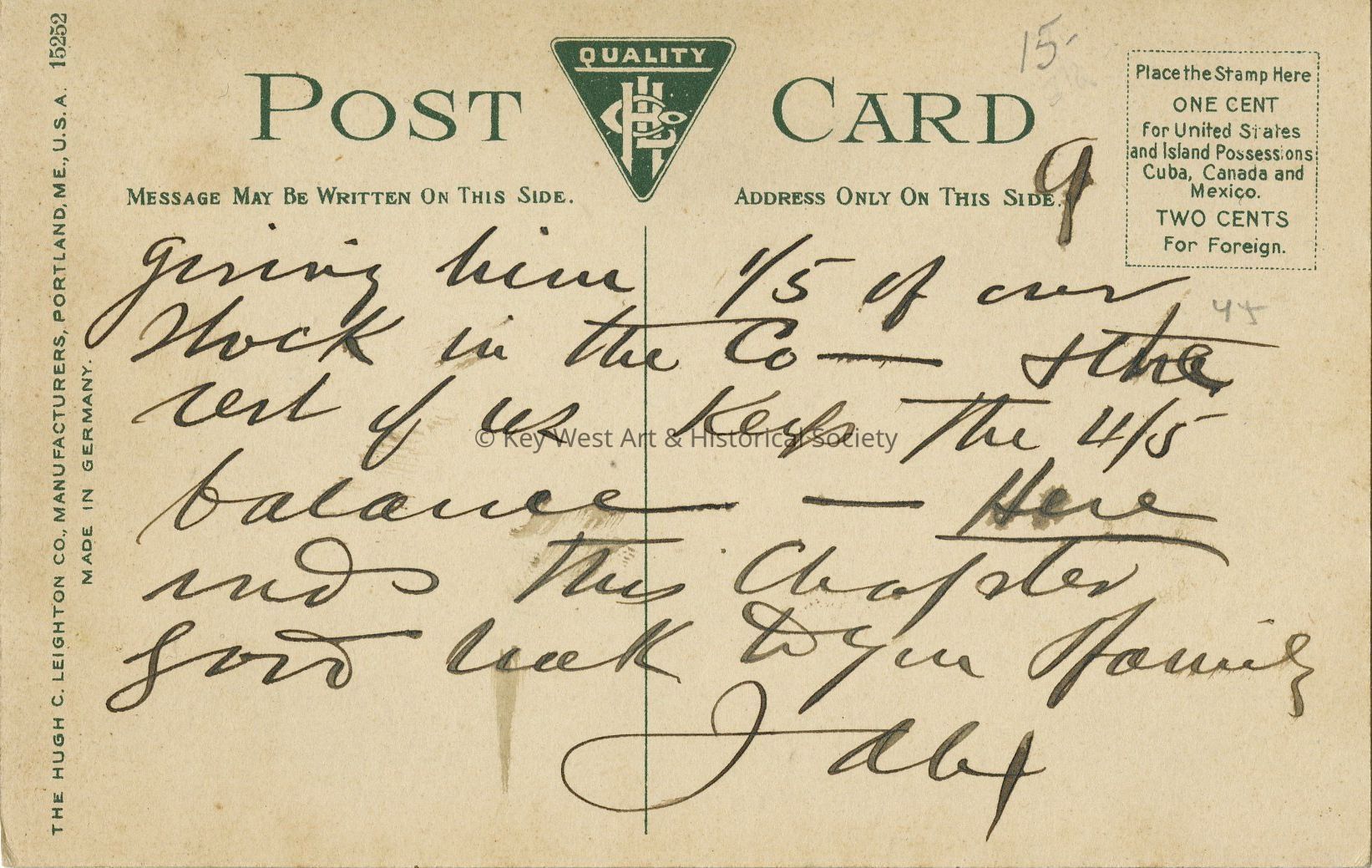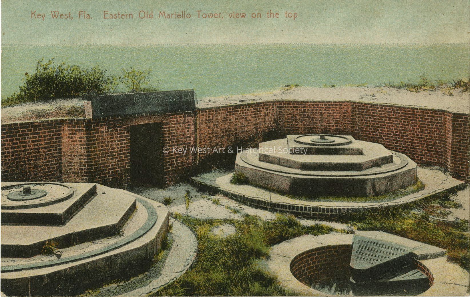 Postcard depicting a view from the top of the Eastern Old Martello Tower in Key West, Florida. This fort is located on present day South Roosevelt Blvd.Collection