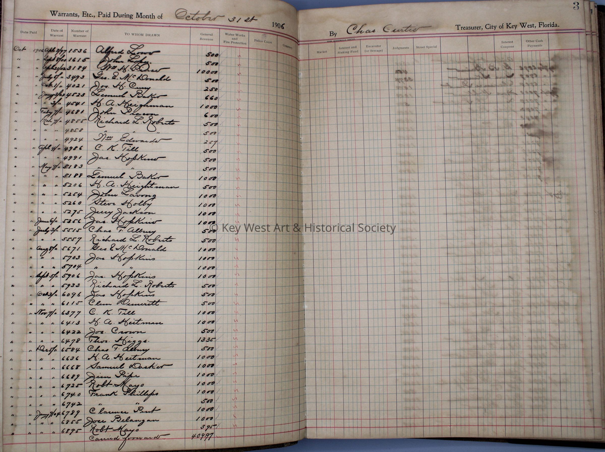 City of Key West Treasurer's Disbursements: © Key West Art & Historical Society