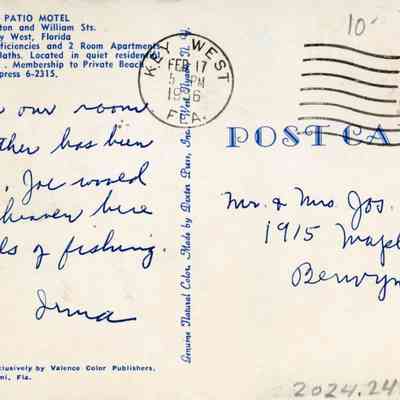 Postcard depicting the El Patio Motel located on the corner of Washington and William Streets, Key West, Florida.