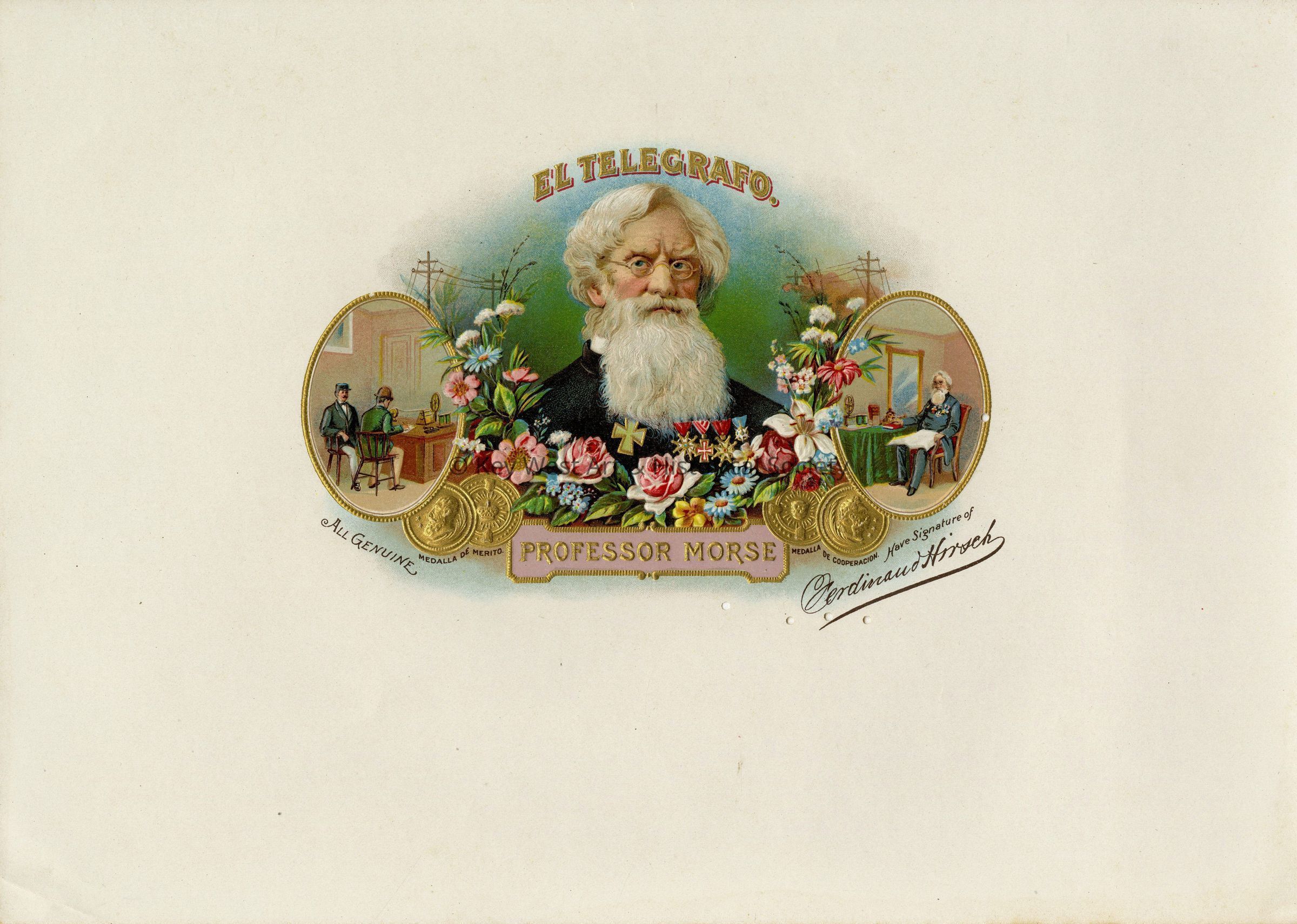 Full color lithograph inner cigar box label promoting El Telegrafo brand from the Ferdinand Hirsch Cigar Factory at 930 Catherine Street. The label features Samuel Morse, inventor of the telegraph. Likely taken from a sample book produced by the lithographer.Type of Print