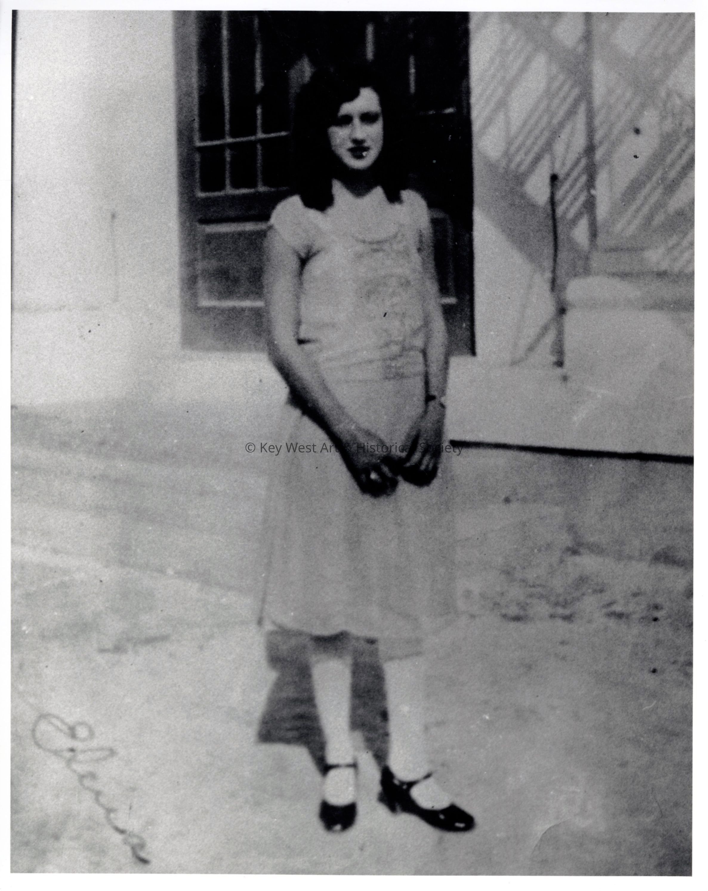 Black and white photograph of Elena Milagro Hoyos taken when she was seventeen years old.