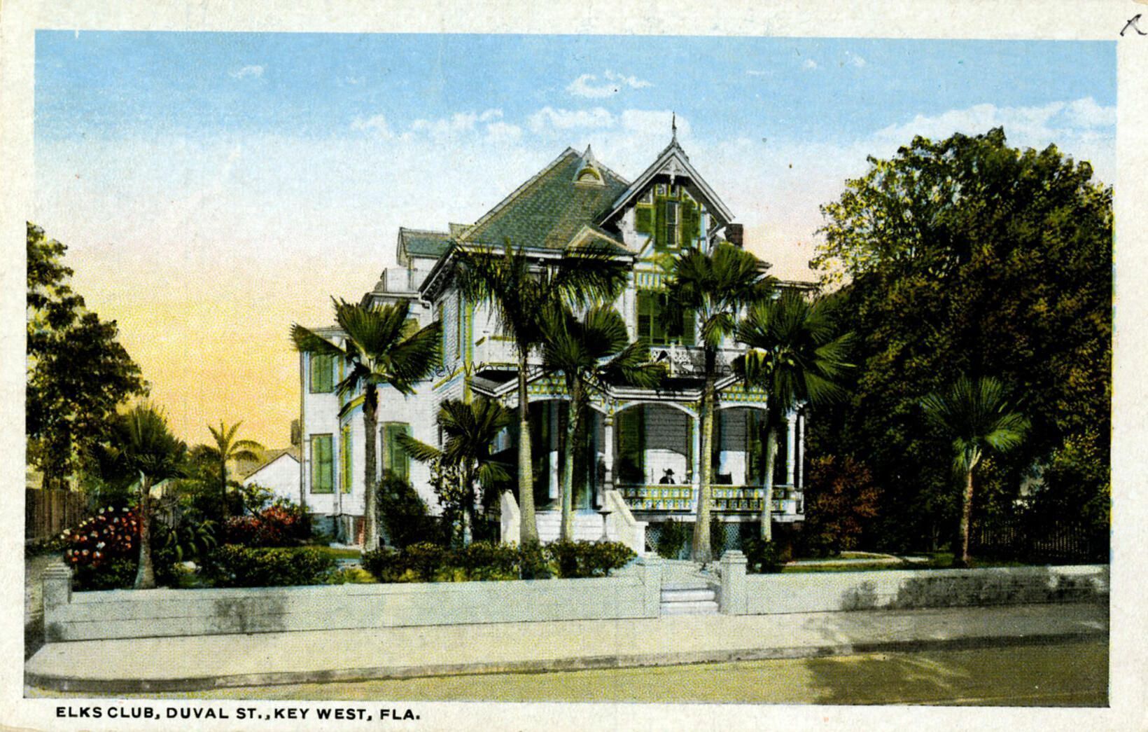 Postcard depicting the Elks Club building at 313 Duval Street. The caption reads, 'Elks Club, Duval St., Key West, Fla.'Subject Place
