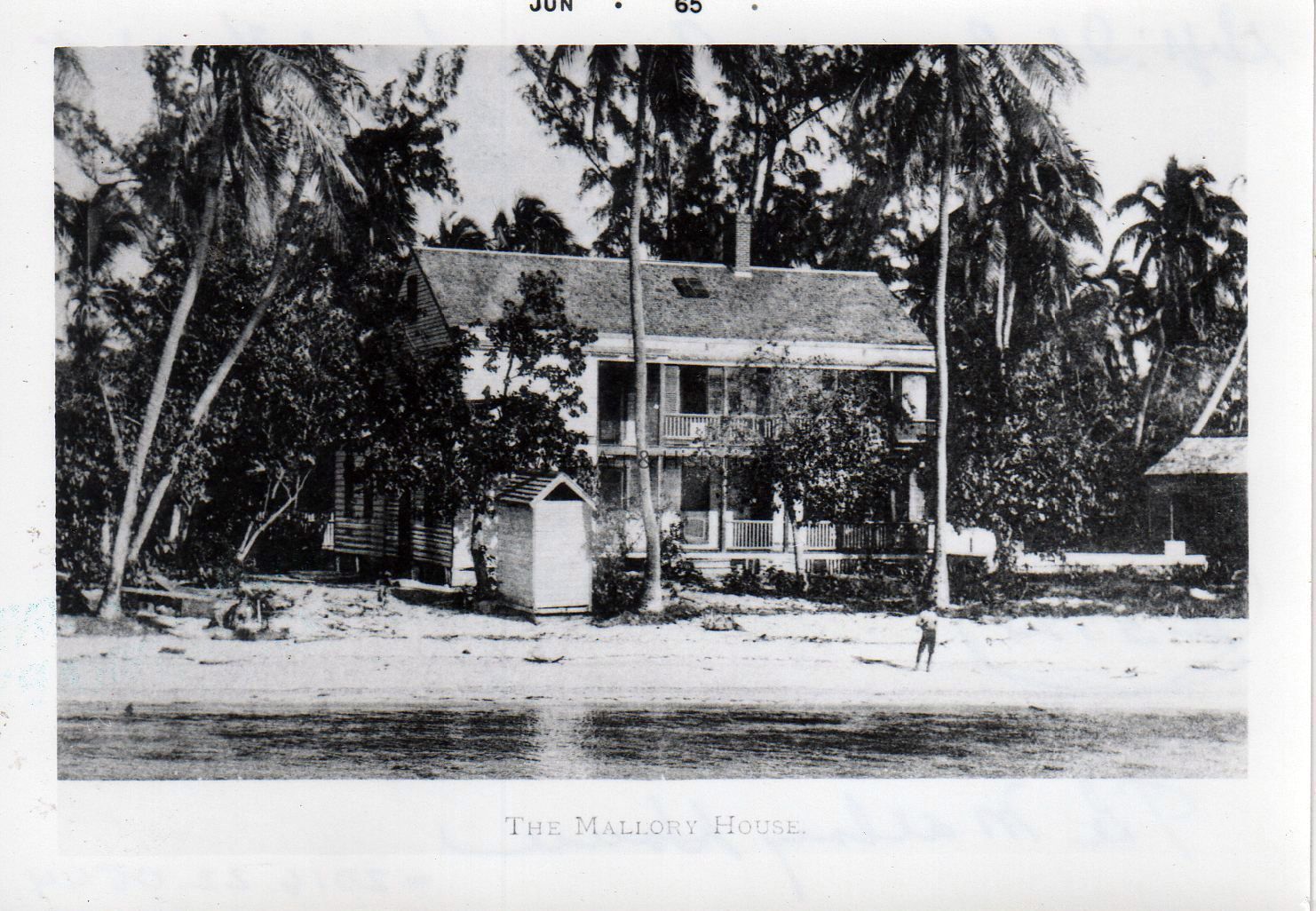 Black and white photograph of the Ellen Mallory Boarding House that formerly stood on the beach in present-day Truman Annex.