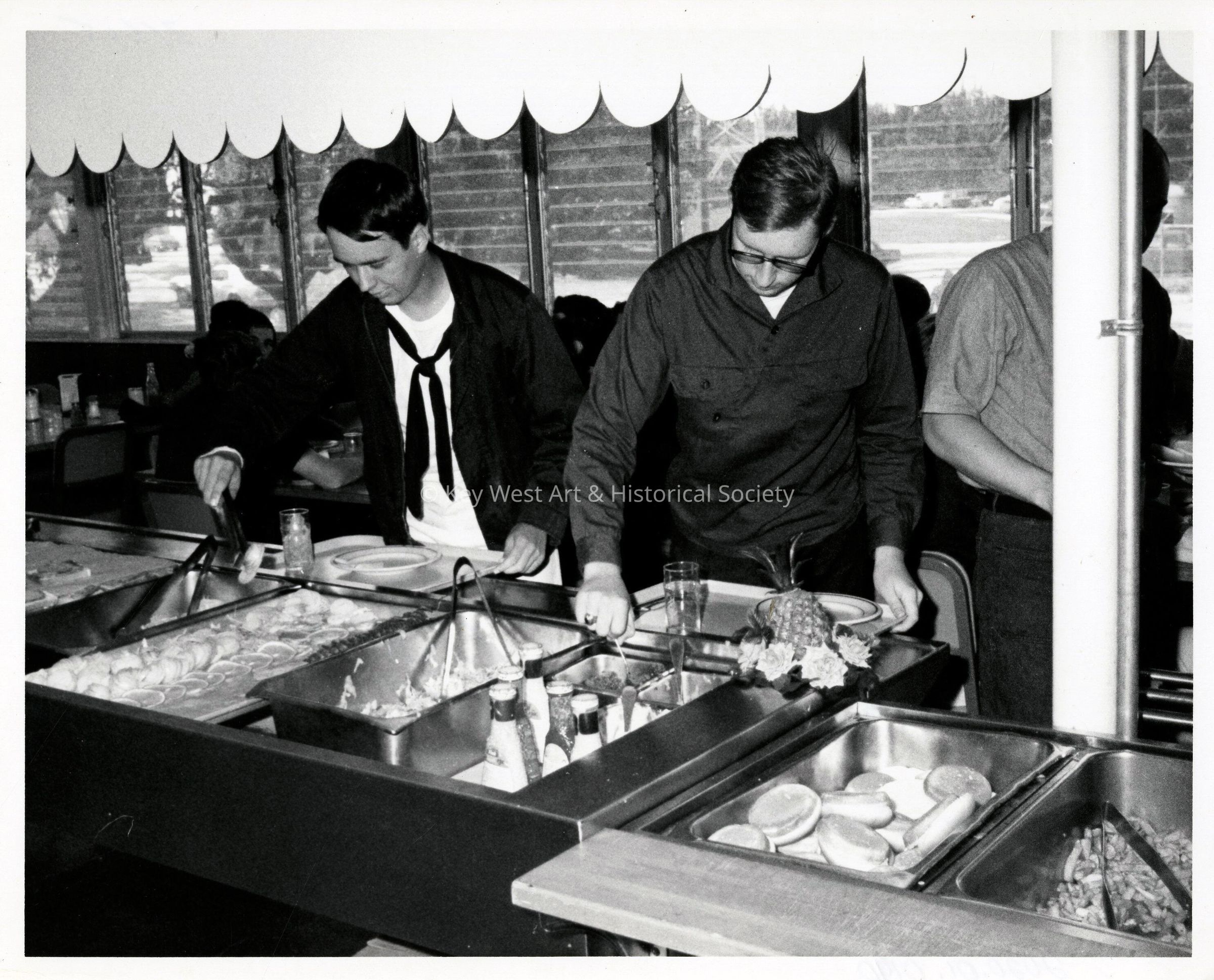 Black and white photograph of the enlisted men's cafeteria at Naval Air Station Key West.