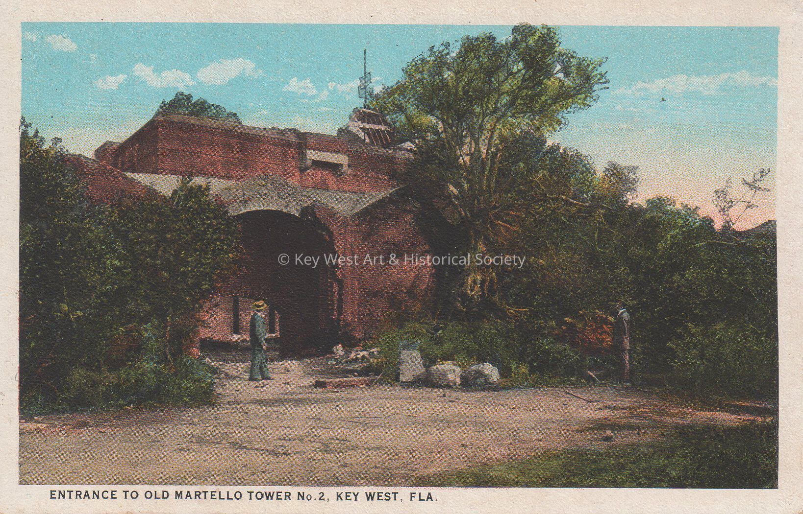 Postcard depicting a man outside the entrance to Fort East Martello. The caption reads, ‘Entrance to Old Martello Tower Number 2, Key West Florida’.Subject Place