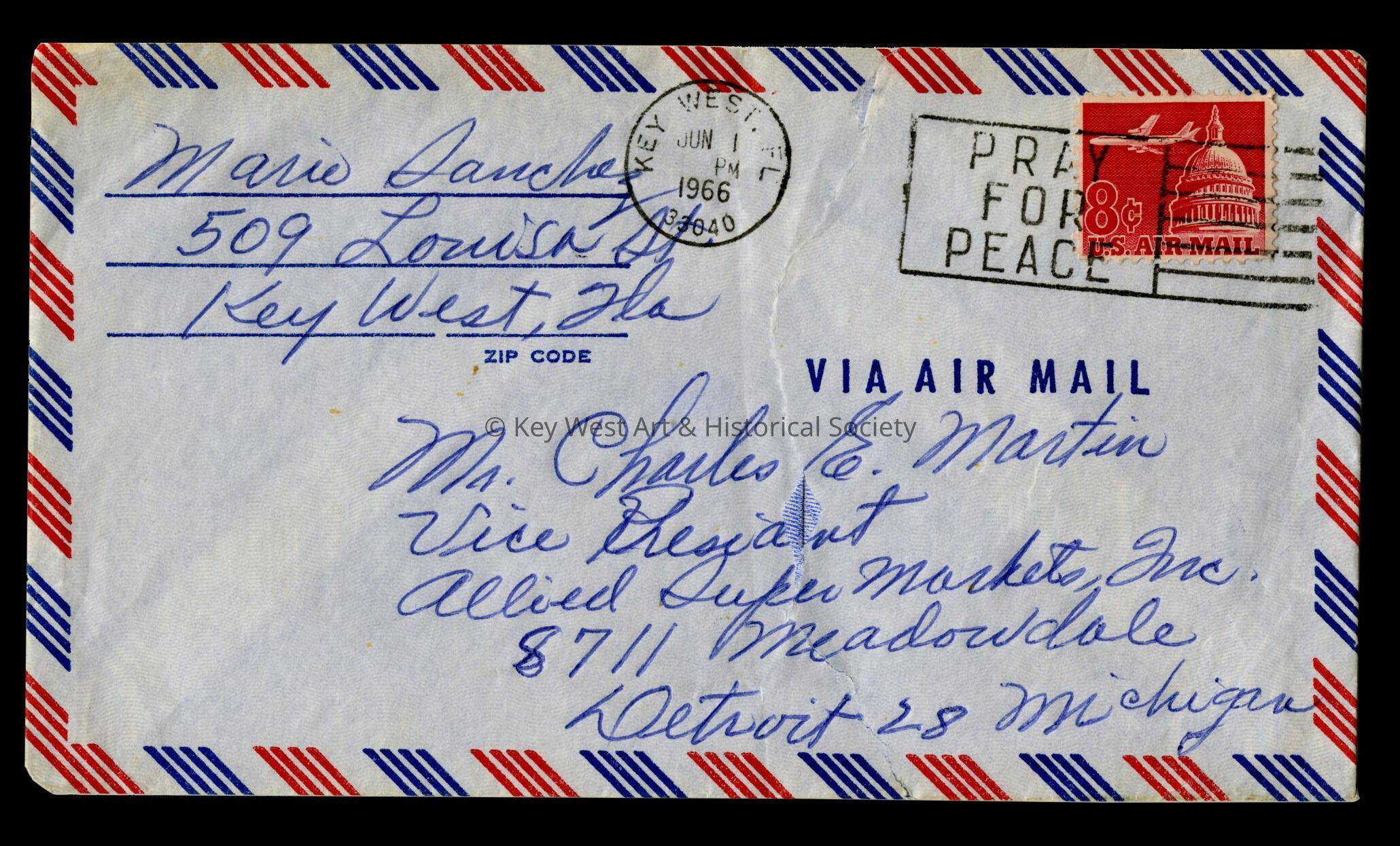 Envelope Addressed to Charles Martin from Mario Sanchez: © Key West Art & Historical Society