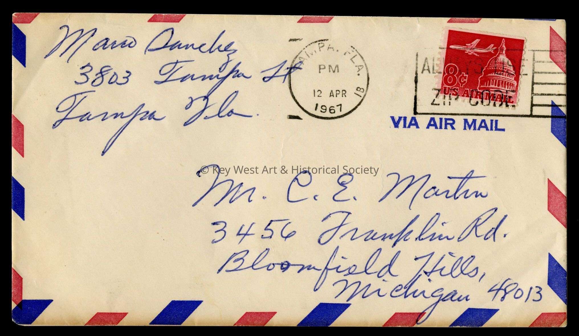 Envelope Addressed to Charles Martin from Mario Sanchez: © Key West Art & Historical Society
