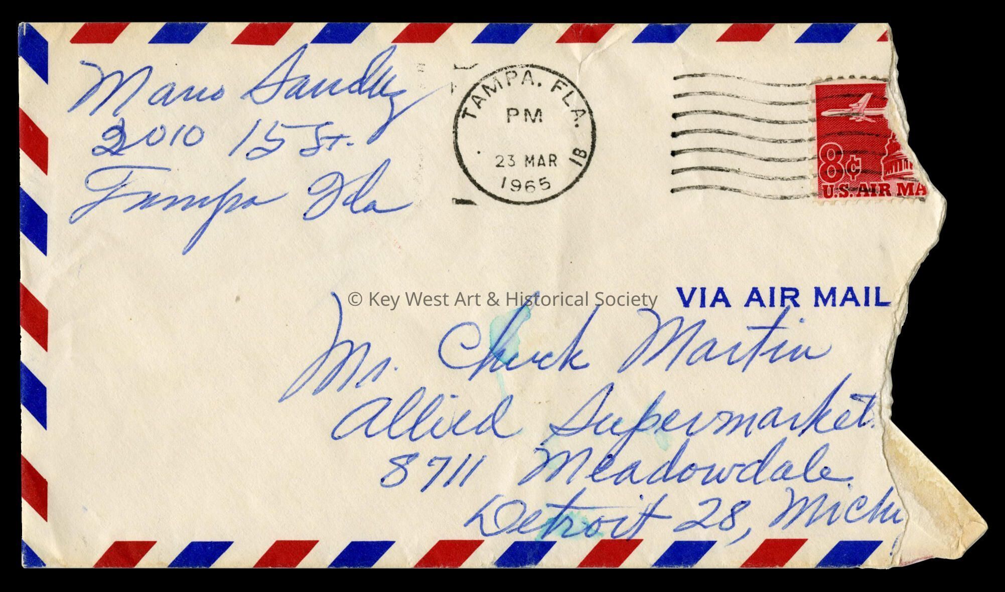 Envelope Addressed to Charles Martin from Mario Sanchez: © Key West Art & Historical Society