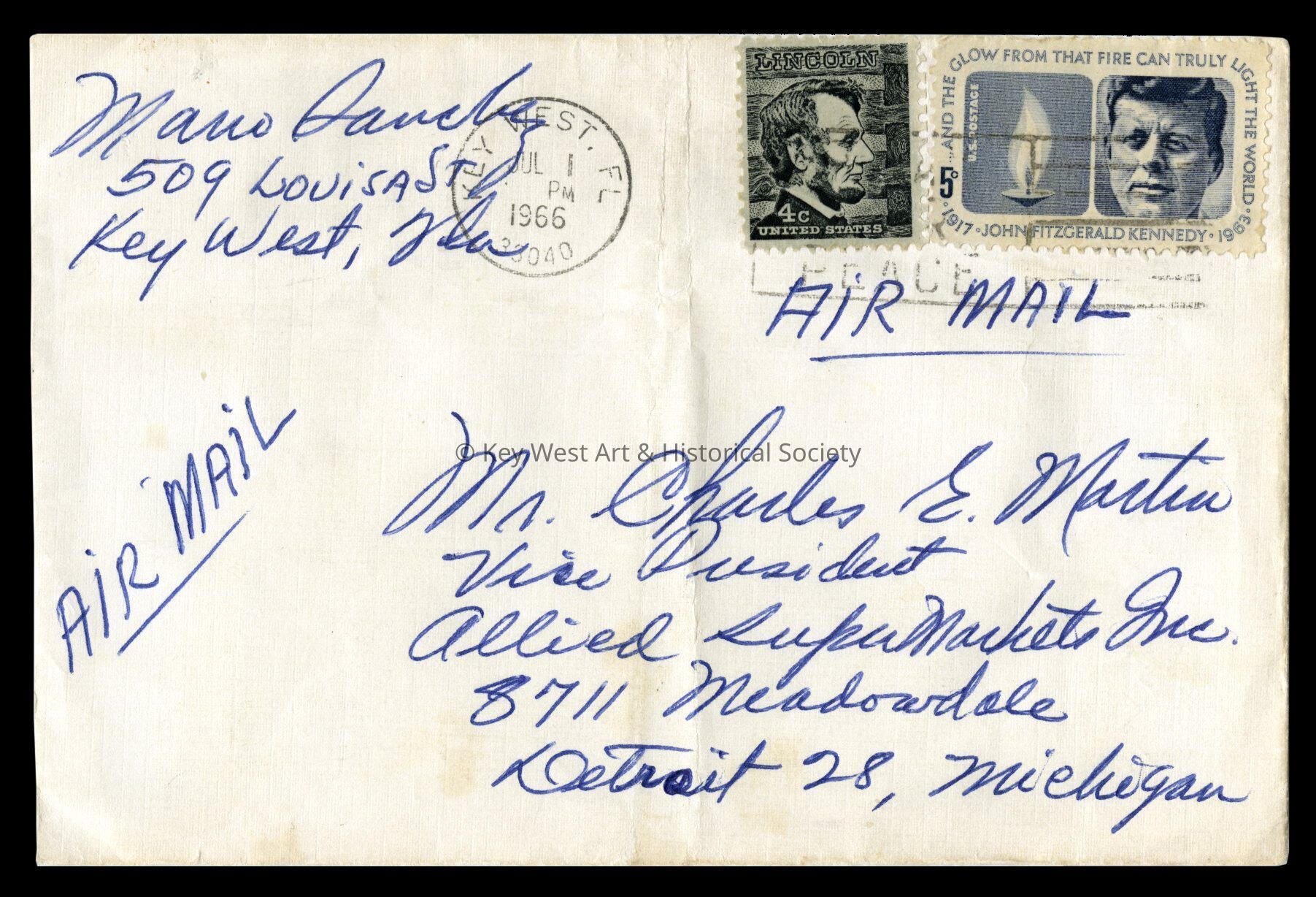 Envelope Addressed to Charles Martin from Mario Sanchez: © Key West Art & Historical Society