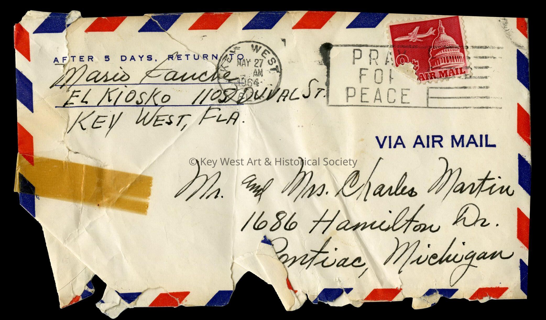 Envelope Addressed to Charles Martin from Mario Sanchez: © Key West Art & Historical Society