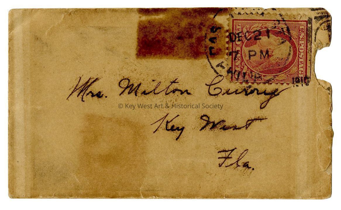 The envelope that contained note (1987.01.0073c) from Captain Sigsbee written to Mrs. Milton Curry.