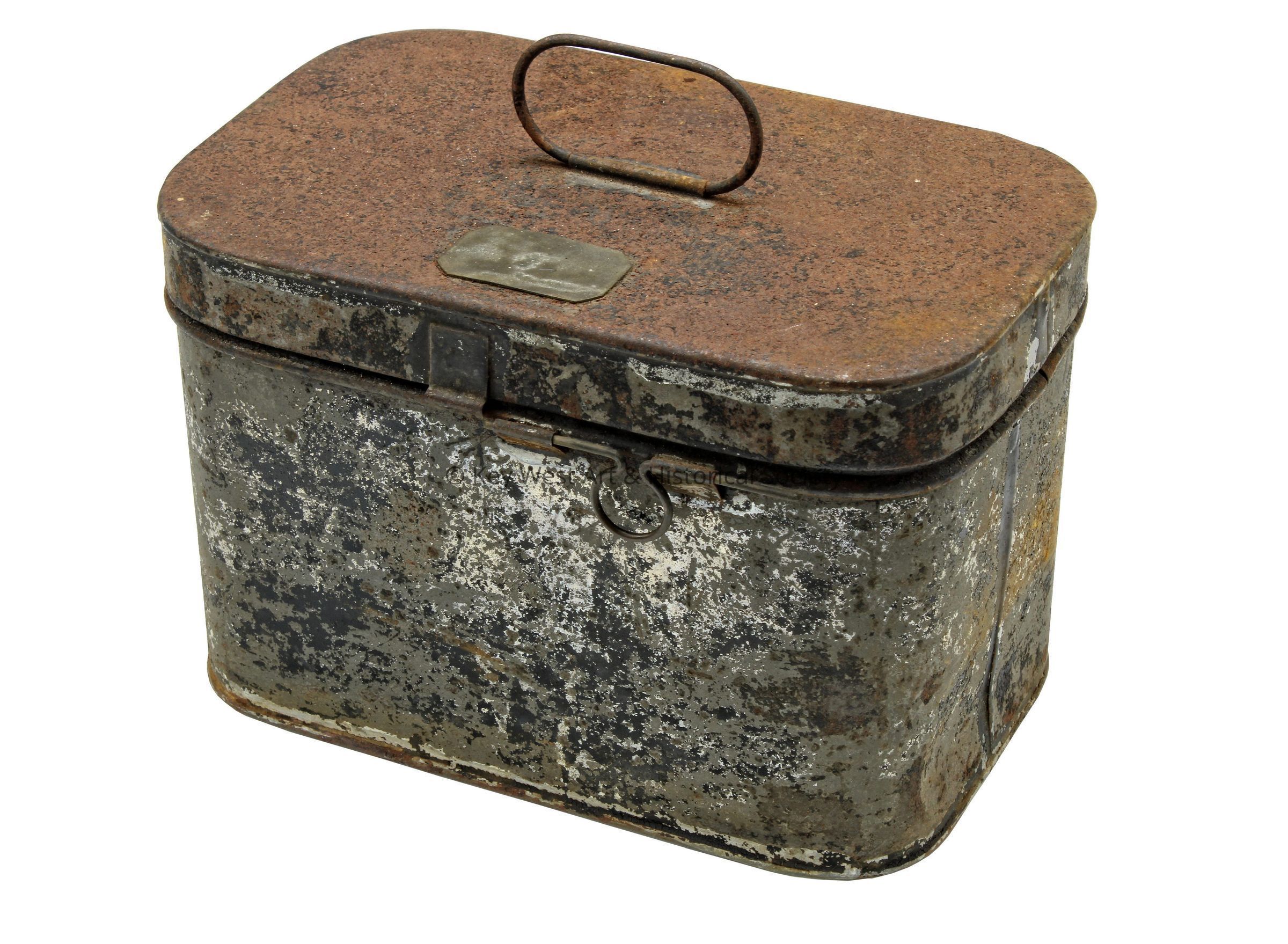 Metal epaulet carrying case that was originally painted black with a velvet lining.