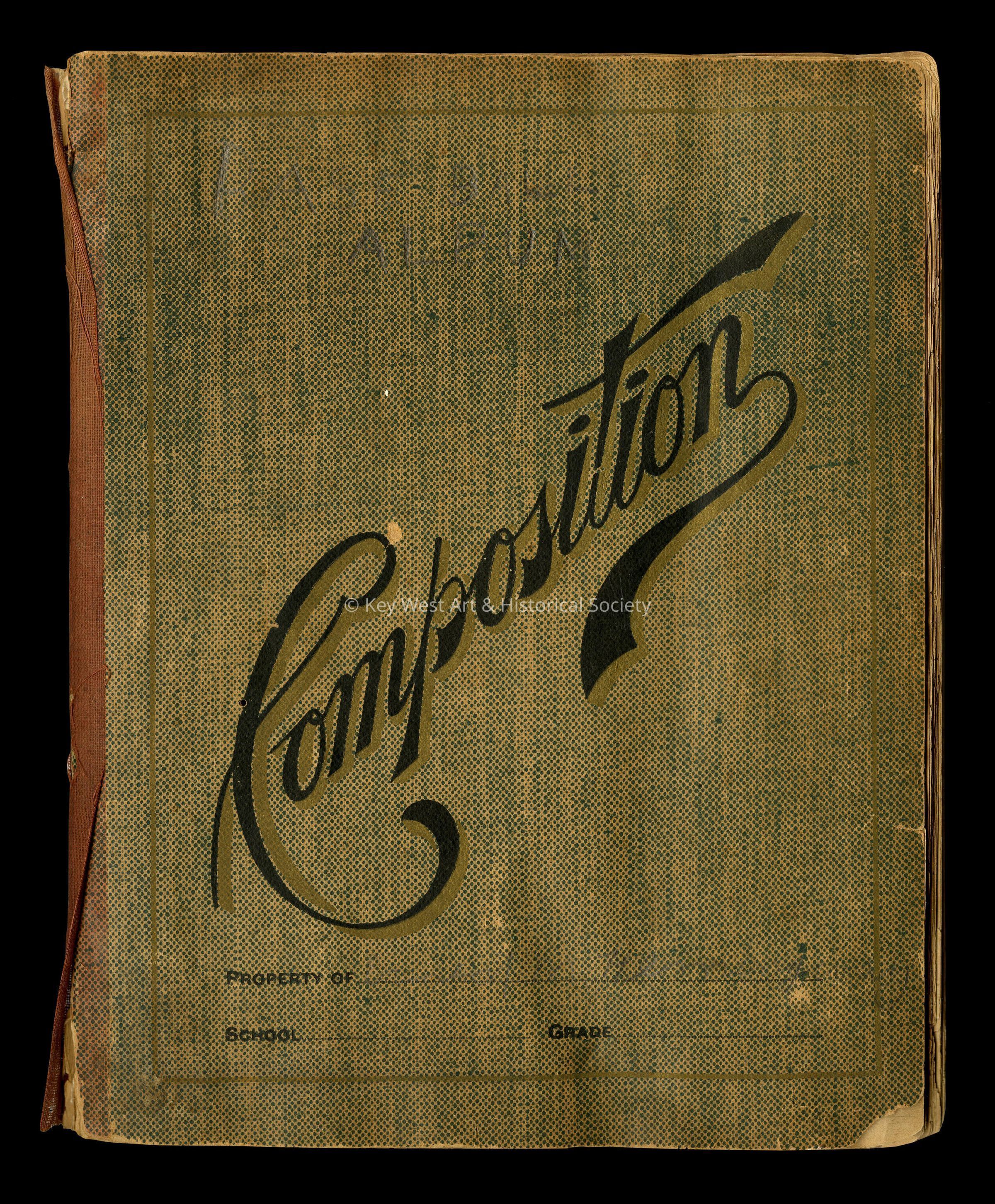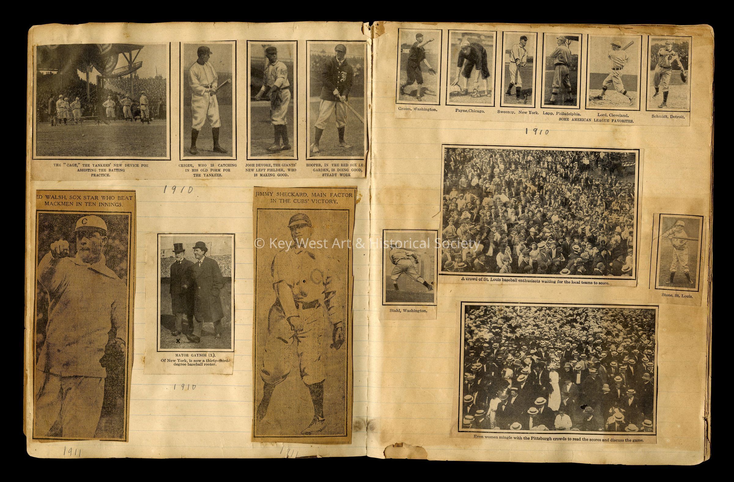 Composition notebook used as a scrapbook by Ernest Hemingway. 'Baseball Album' Property of 'Ernest Hemingway' faintly written in pencil on the front cover. Notebook contains fifty ruled pages on which Hemingway glued newspaper and magazine clippings of baseball pictures and articles. Particular attention paid to the 1910 and 1911 Chicago Cubs. There are some loose clippings in the back of the notebook.Collection