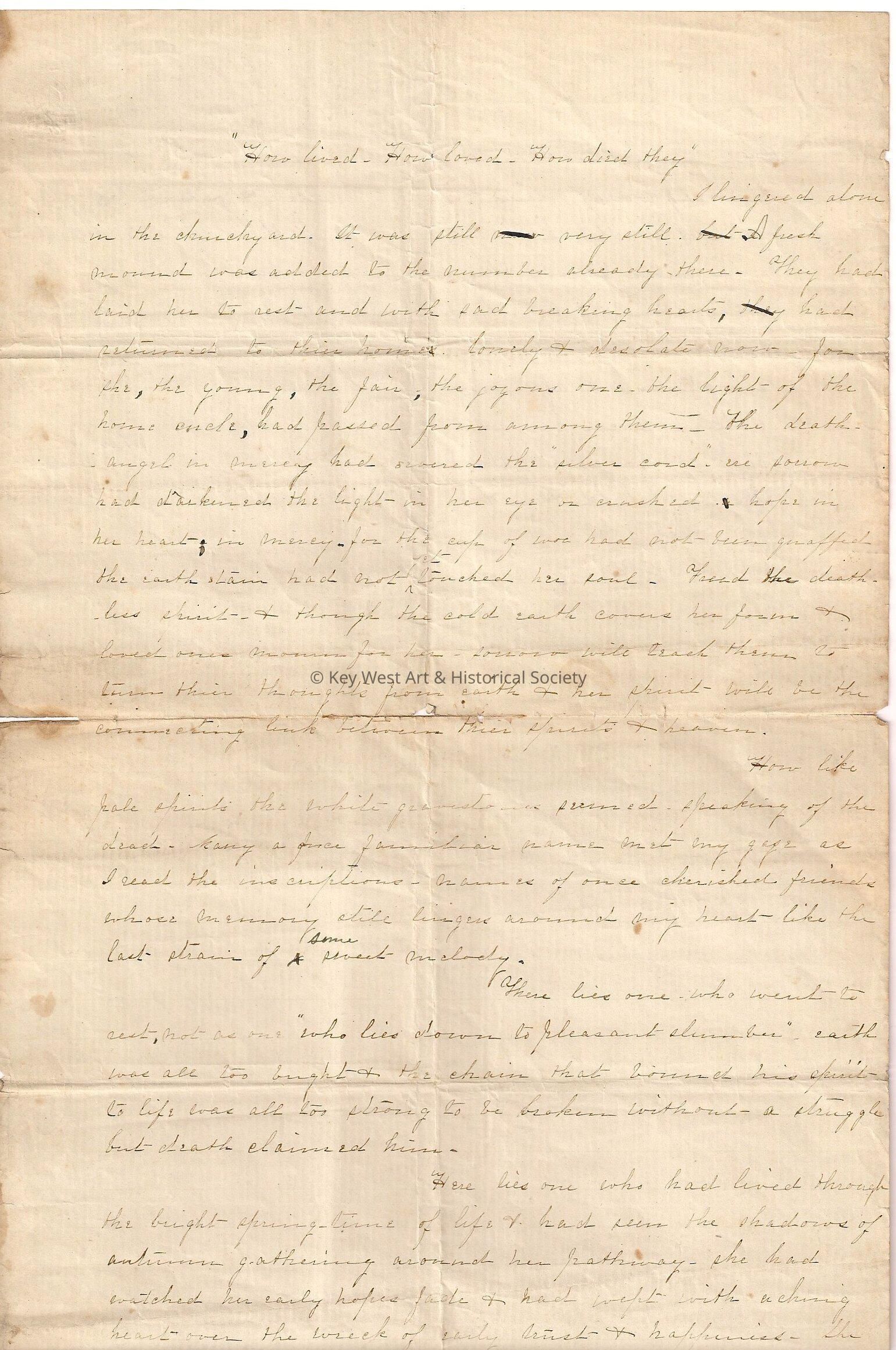 Composition titled "How Lived, How Loved, How Died they".