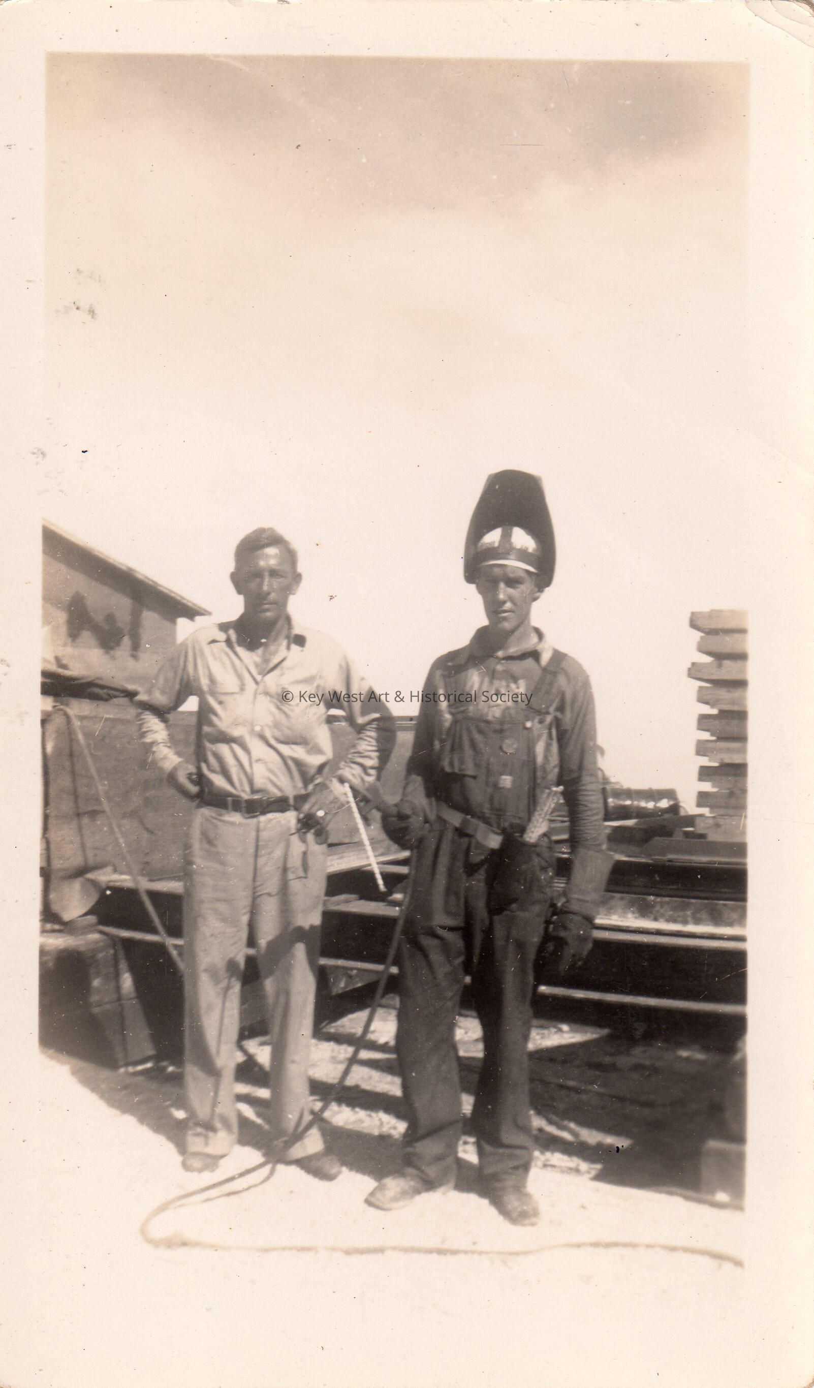 Old Seven Mile Bridge construction in the 1930s - welders.