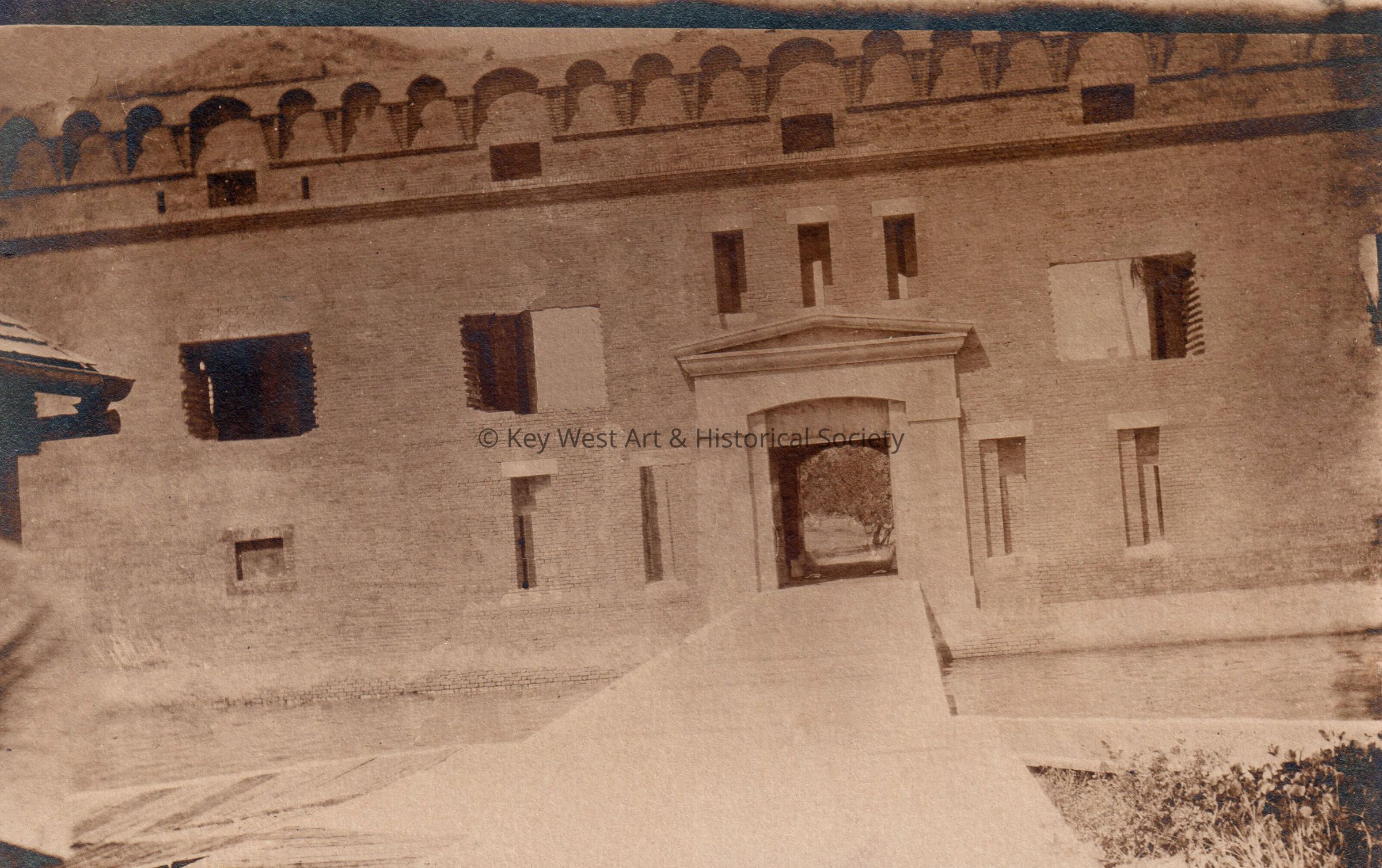 Postcard depicting the entrance to a fort with a moat (Fort Jefferson).