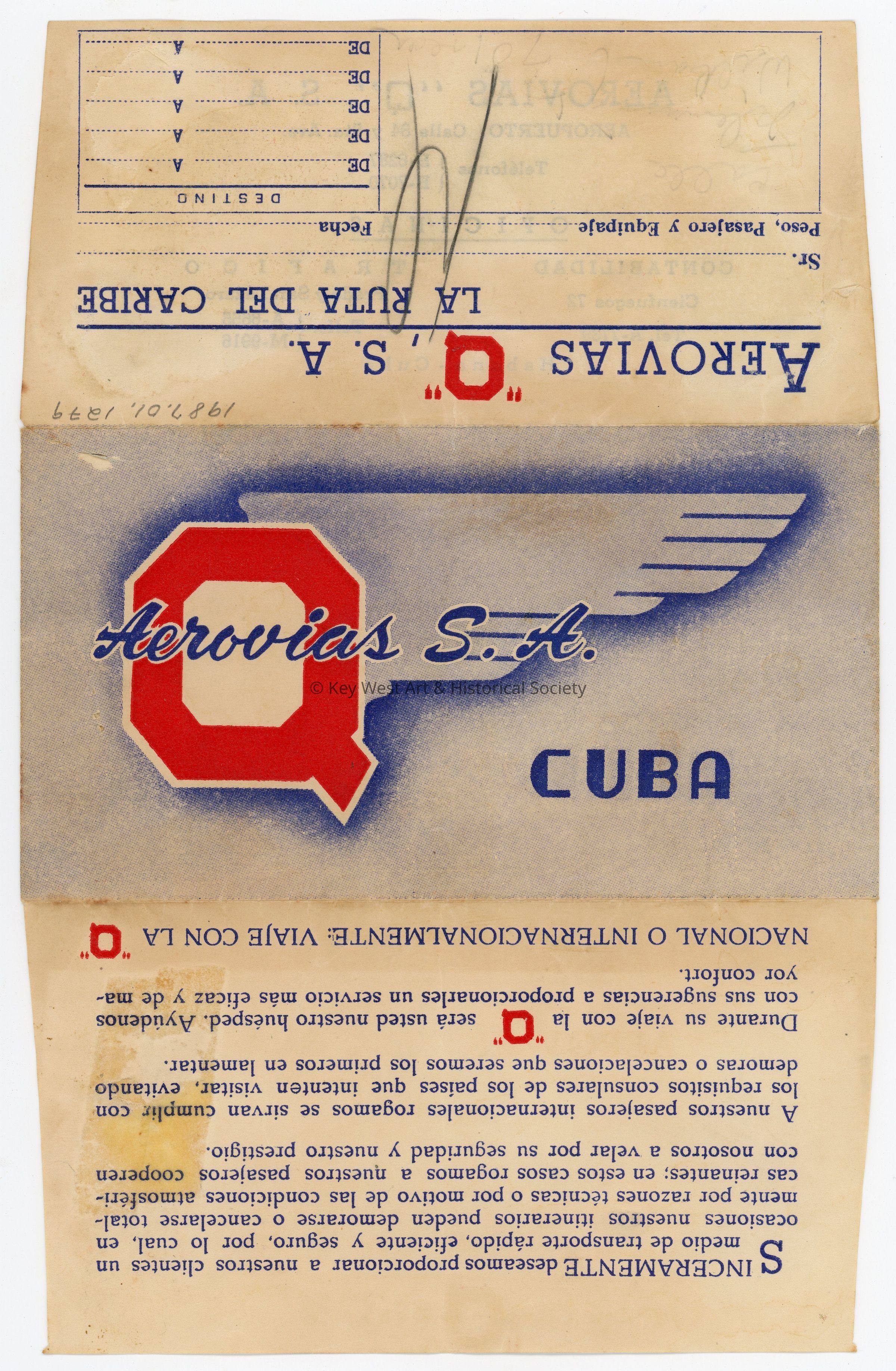 Aerovías Q was a Cuban airline formed by Manuel Quevedo in late 1945 and flew regularly between Key West and Cuba.Collection