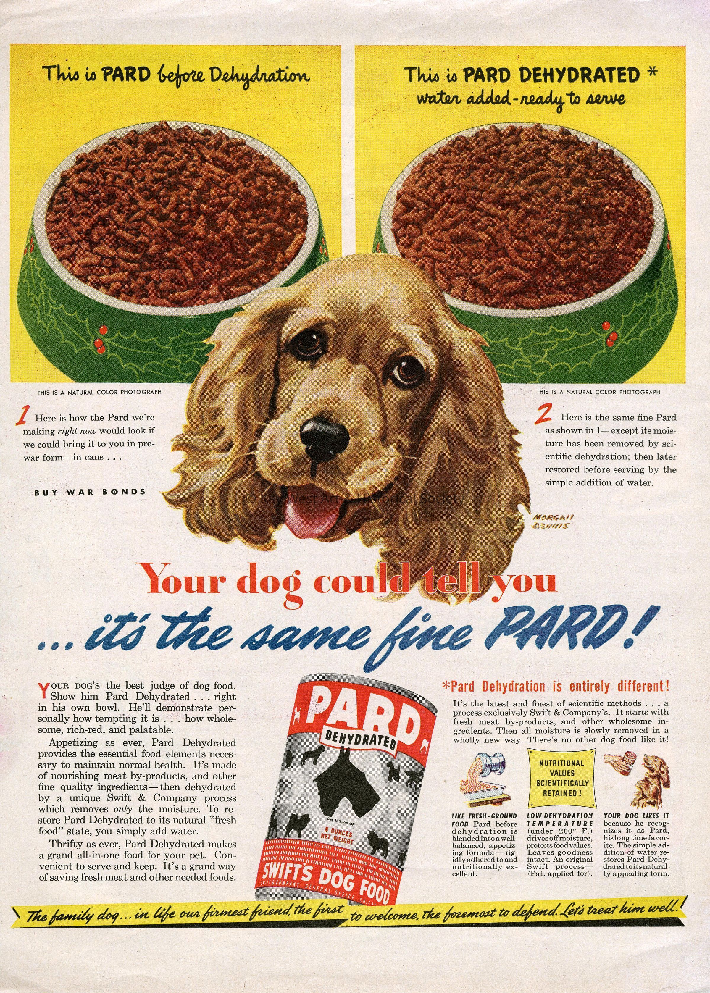 A printed advertisement for Pard Dog Food that includes an illustration by Morgan Dennis.  The sketch depicts a Cocker Spaniel.Collection