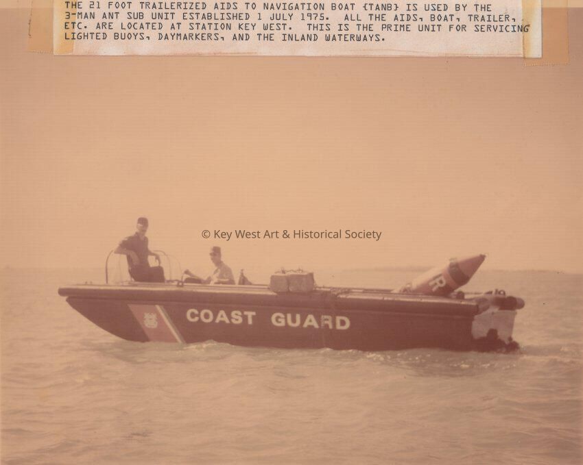 The Coast Guard's 21 foot trailerized aids to navigation boat (TANB) was used by the 3-man anti sub unit established on July 1, 1975.  All the aides, boat, trailer, etc. are located at Station Key West.  This is the prime unit for servicing lighted buoys, daymarkers, and the inland waterways.Collection