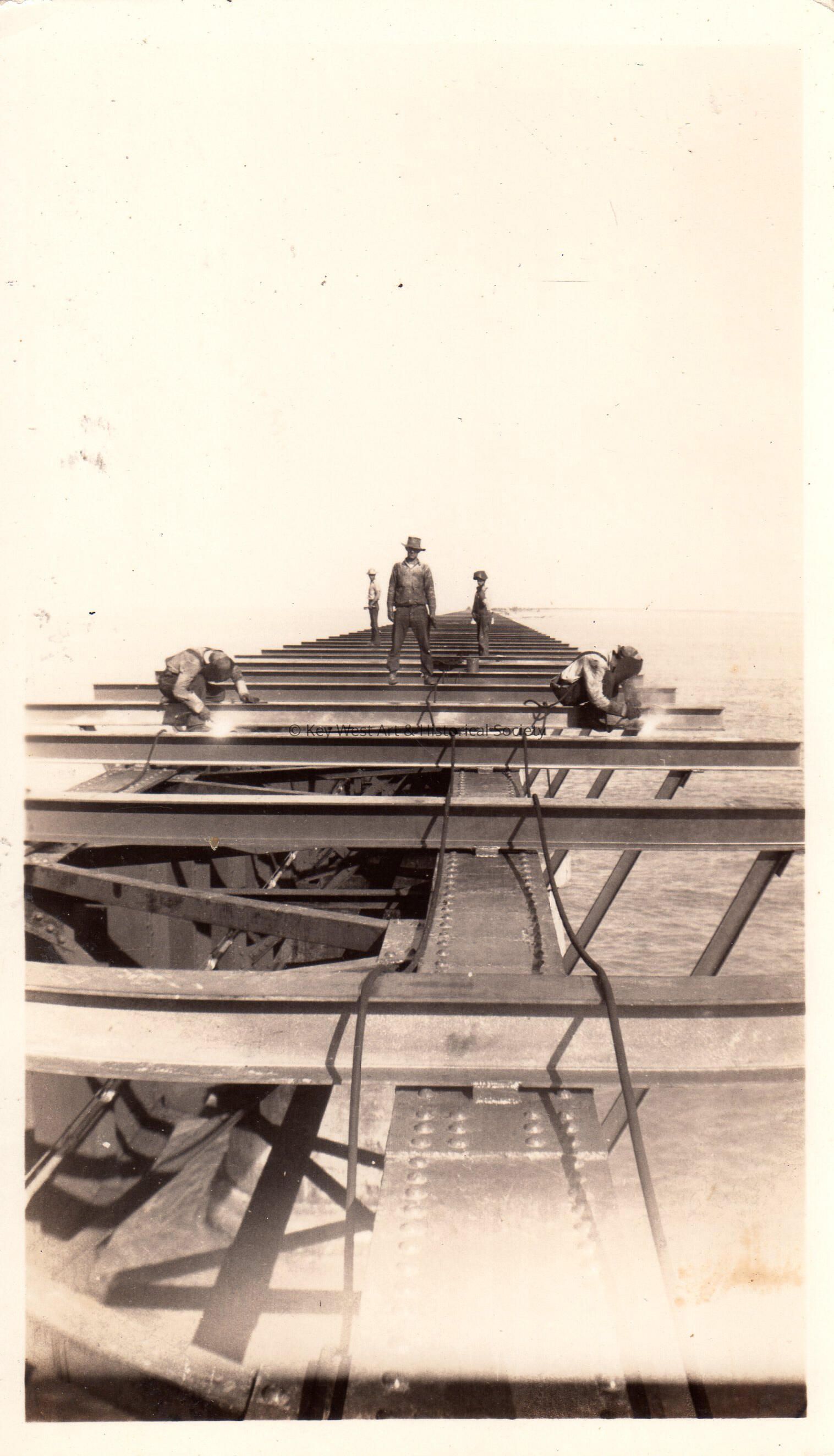 Old Seven Mile Bridge construction in the 1930s - steel girders.Collection