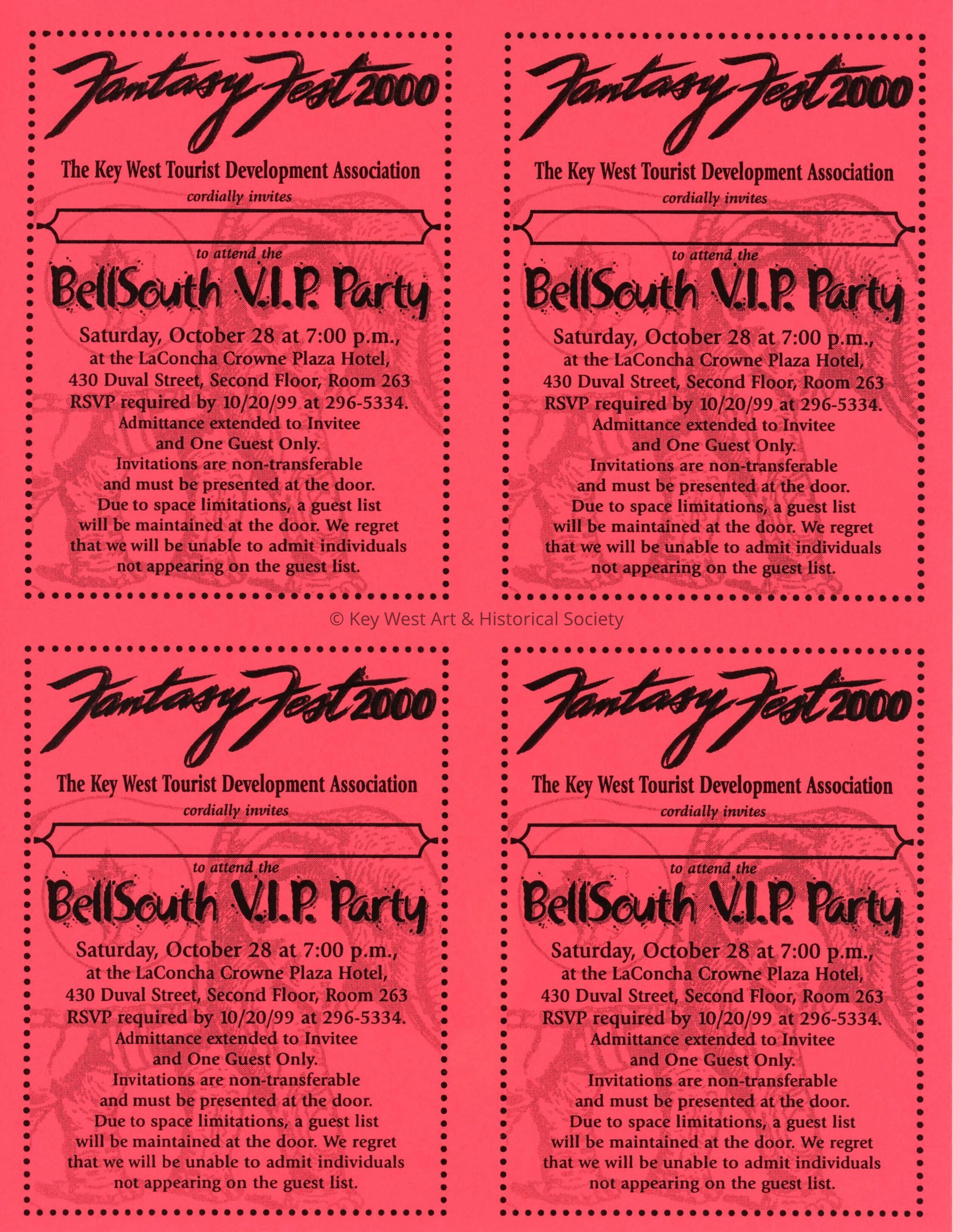 Fantasy Fest 2000 Bellsouth VIP party invitation.
