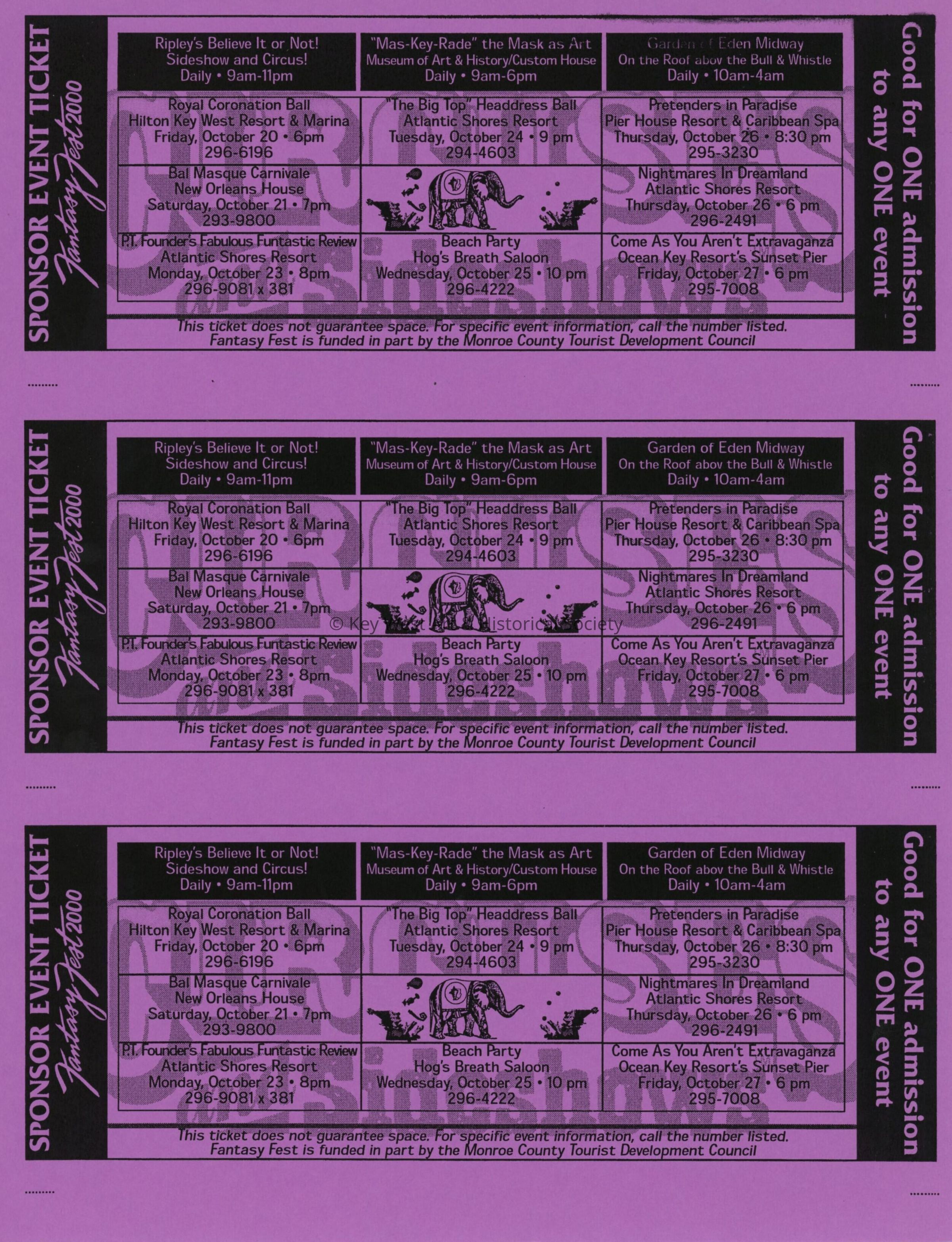Fantasy Fest 2000 Sponsor event tickets.Entry/Object ID