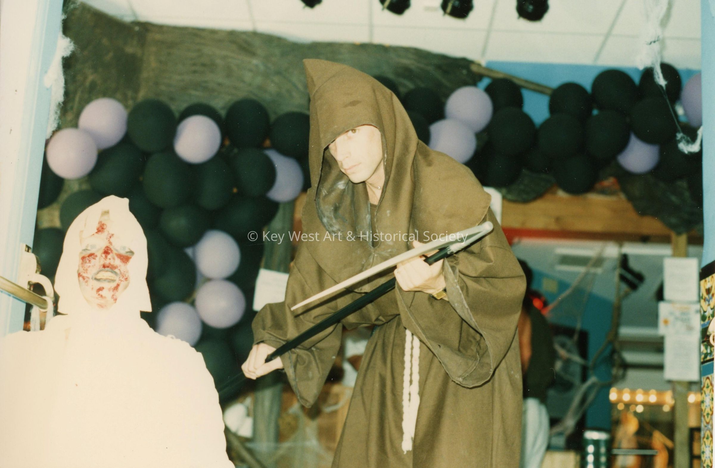 Color photograph of two unknown people in costume for Fantasy Fest.Photograph Details