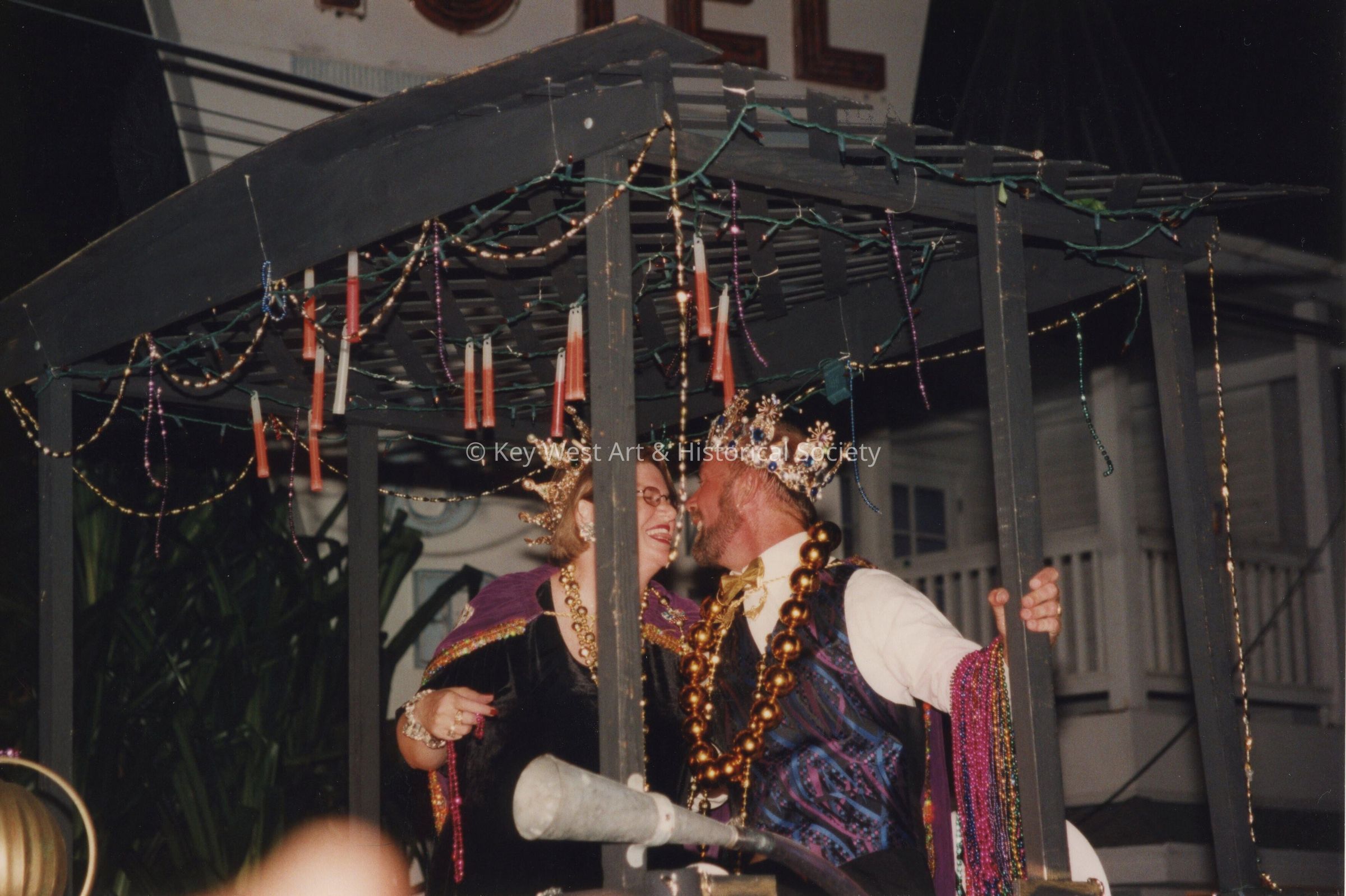 Fantasy Fest queen and king on a float.
