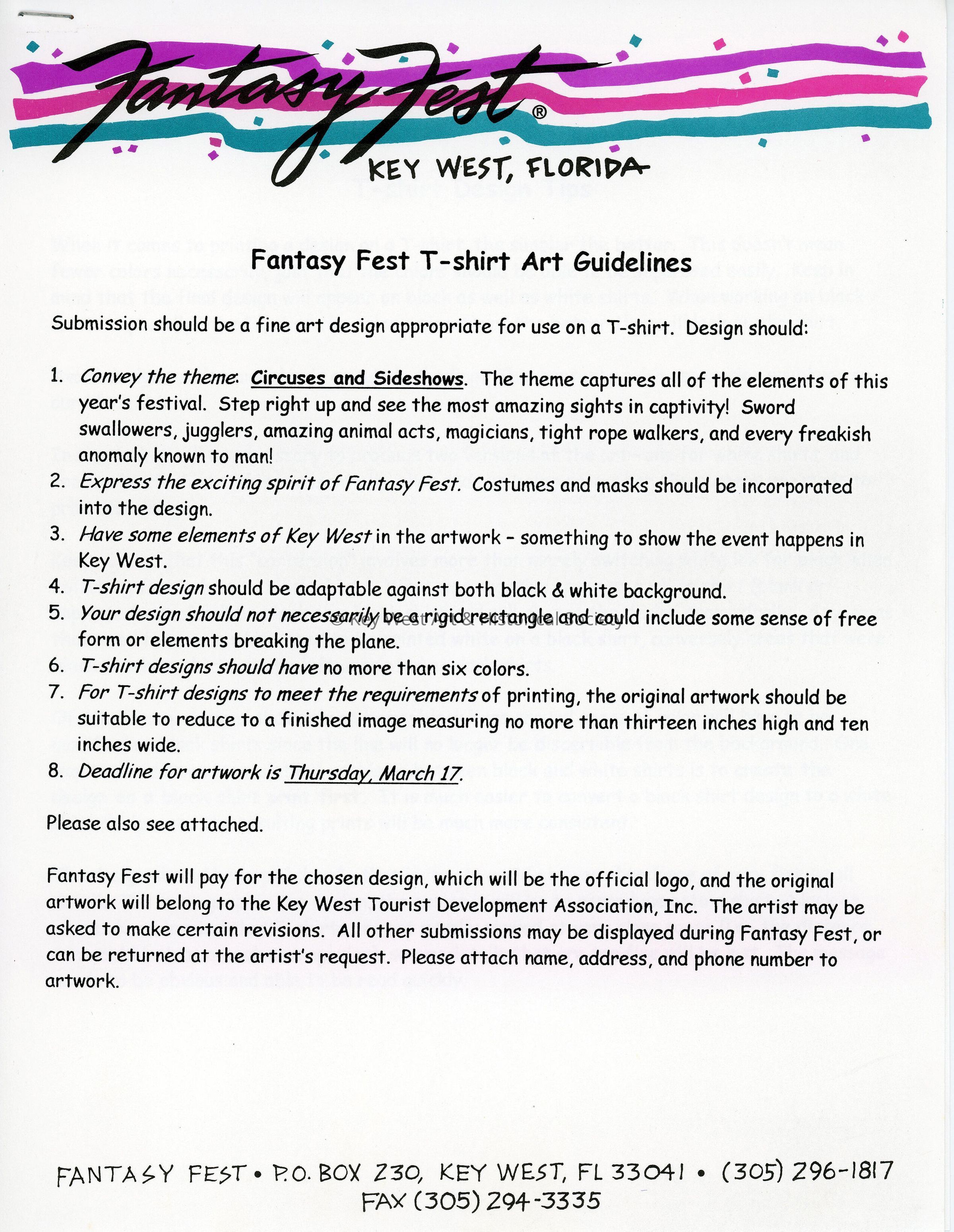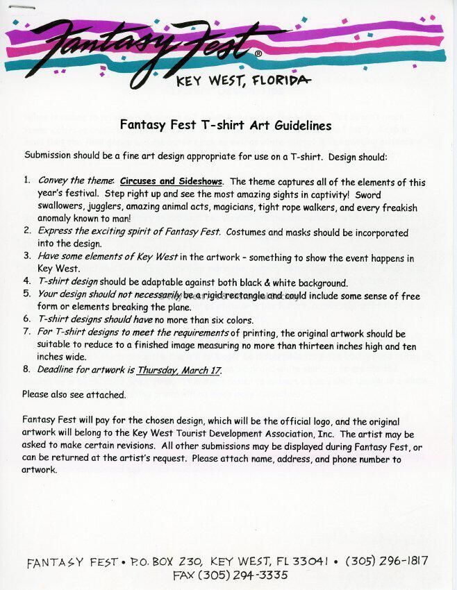 Fantasy Fest T-shirt art guidelines.