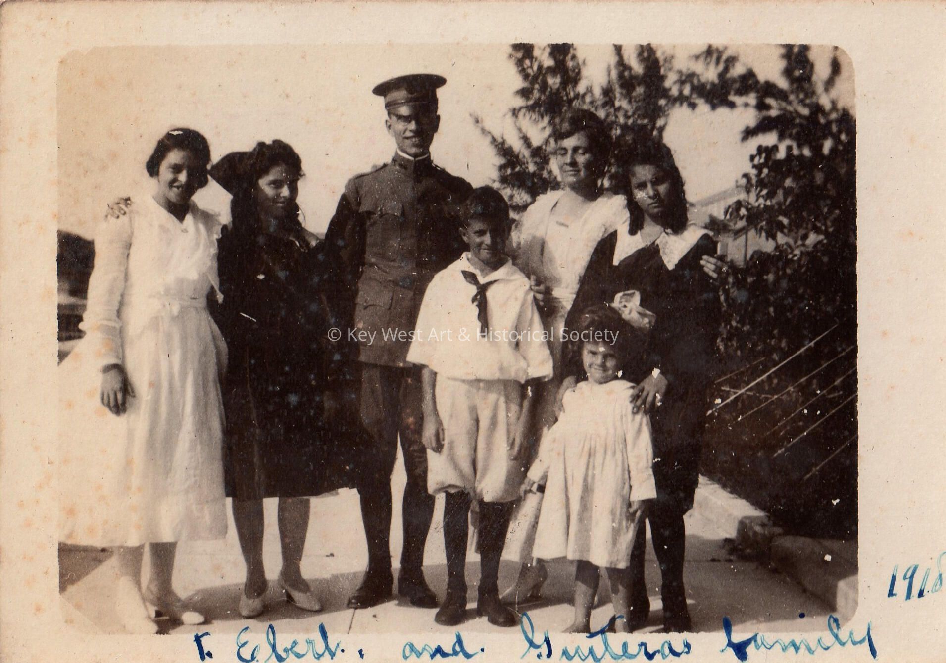 Father Ebert in his World War I uniform, alongside the Guiteras Family, in 1918.Collection
