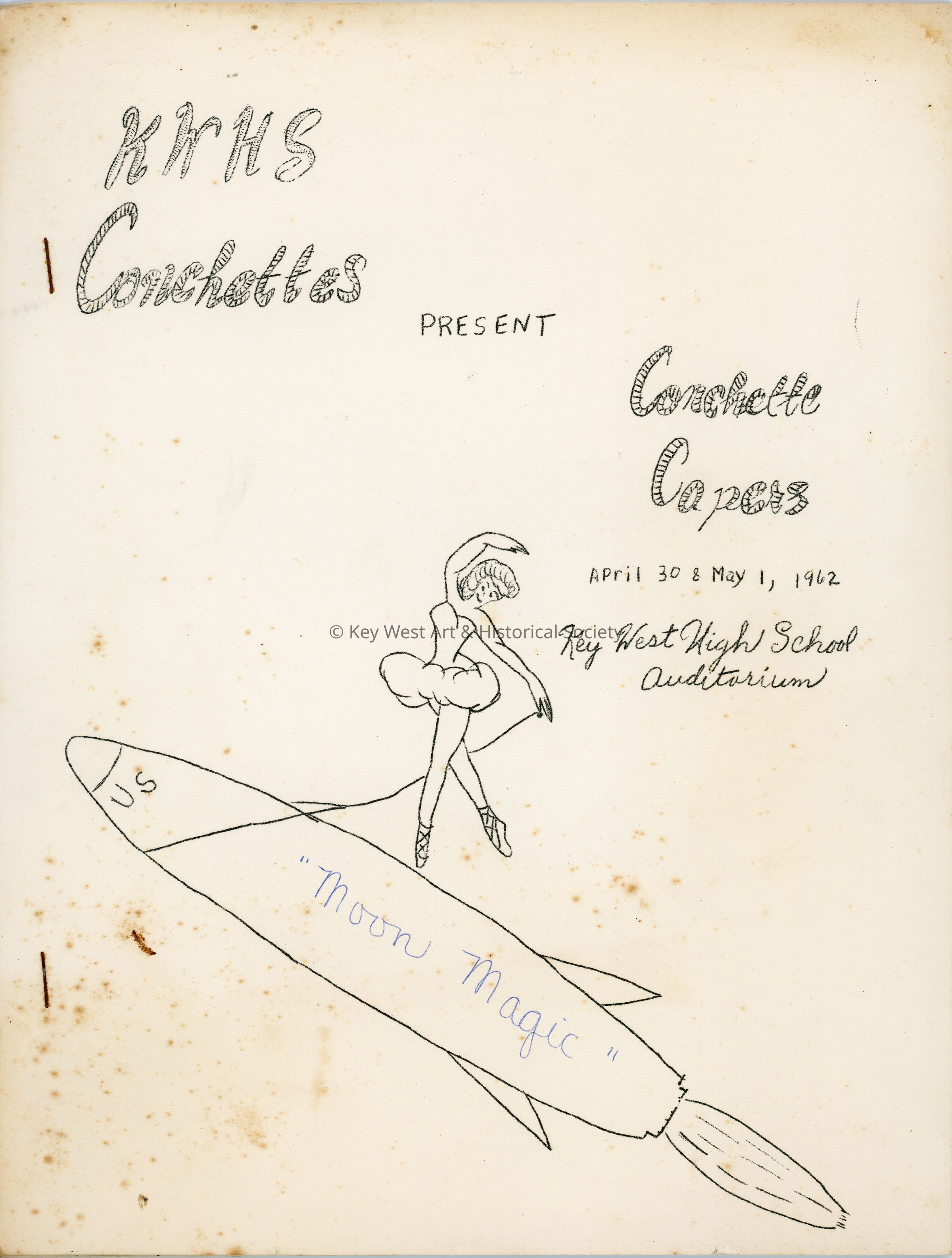 A program for 'Conchette Capers' presented on April 30 and May 1, 1962 by the Key West High School Conchettes and directed by Mrs. Donna Watson. The theme for the show was 'Moon Magic'.
