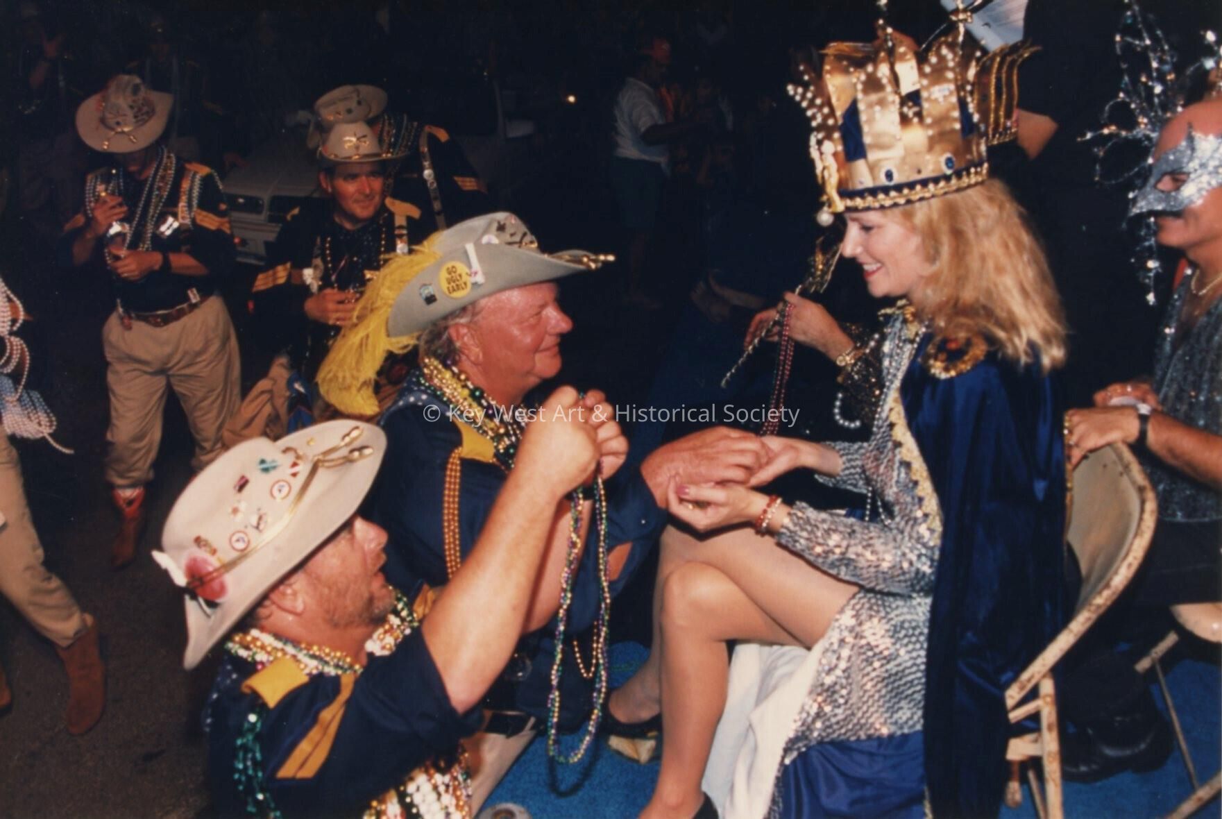 Unknown men giving the fantasy fest queen beads.Entry/Object ID