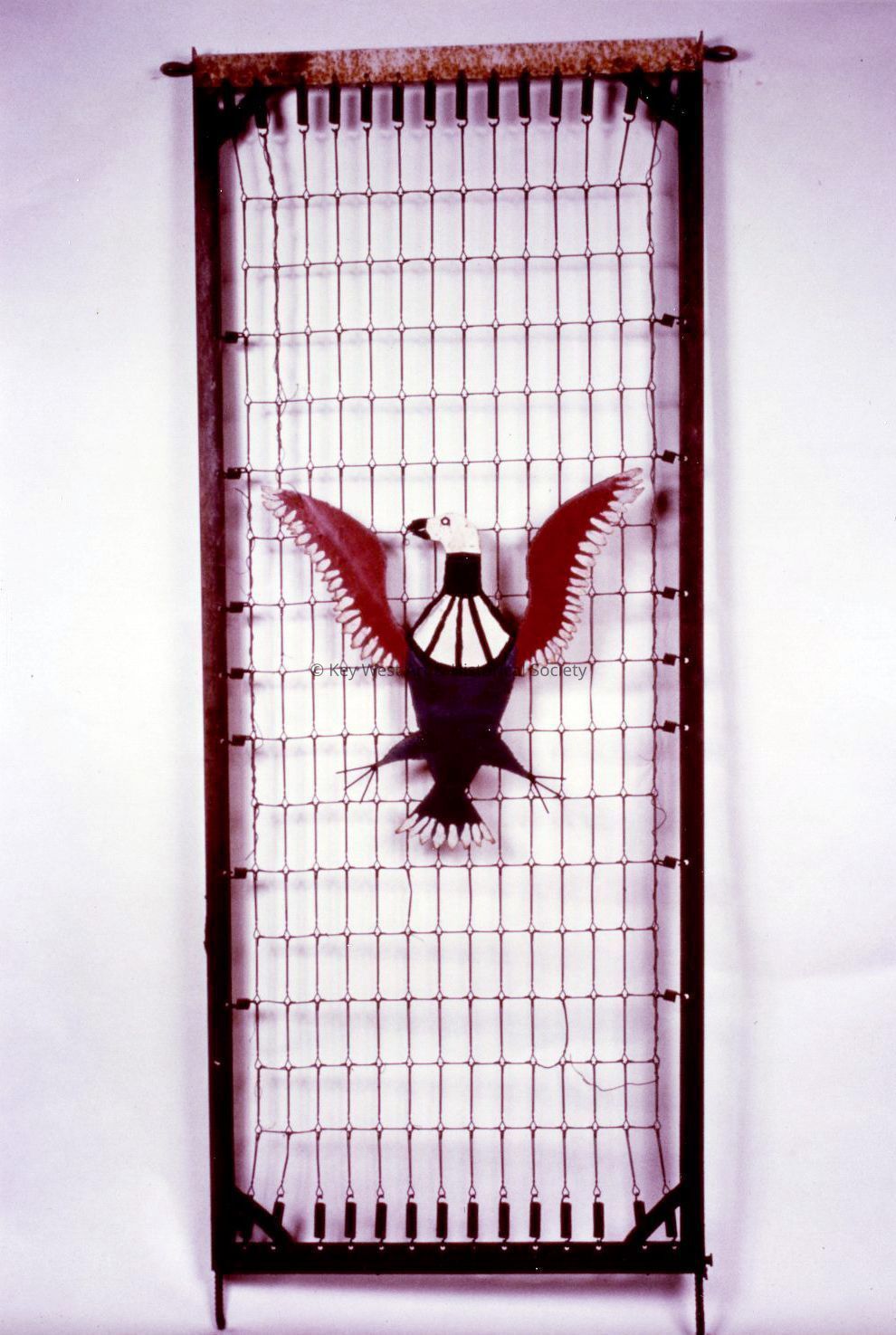 This is one of twenty-two fence panels all constructed from bed springs with painted sheet metal ornament. They originally formed an ornamental fence around Papio's museum. Small ornaments in the form of birds, palm trees or other plant or animal forms were placed between the panels on top of the fence at the joins to serve as a joining pin.Type of Sculpture